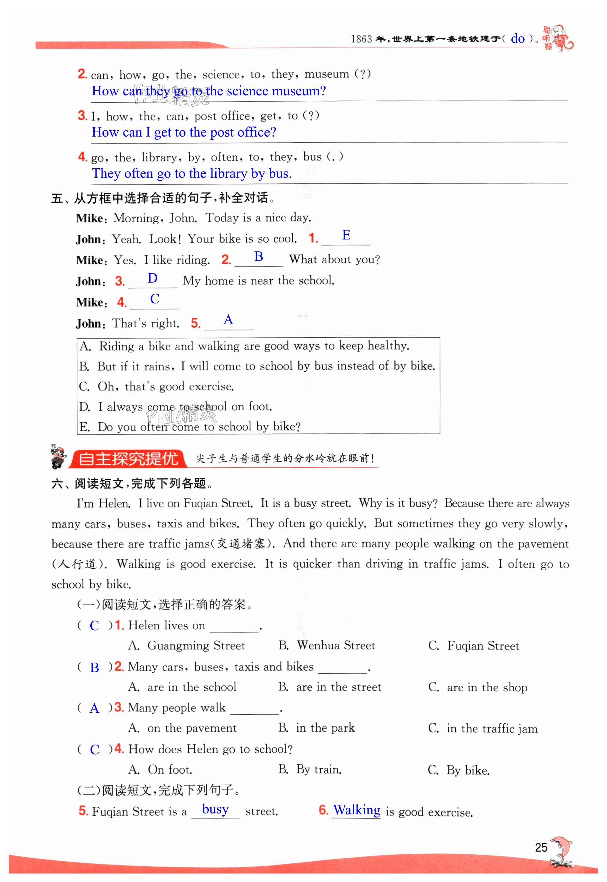 注:目前有些书本章节名称可能整理的还不是很完善,但都是按照顺序排列的,请同学们按照顺序仔细查找。练习册 2024年实验班提优训练六年级英语上册人教版 答案主要是用来给同学们做完题方便对答案用的,请勿直接抄袭。