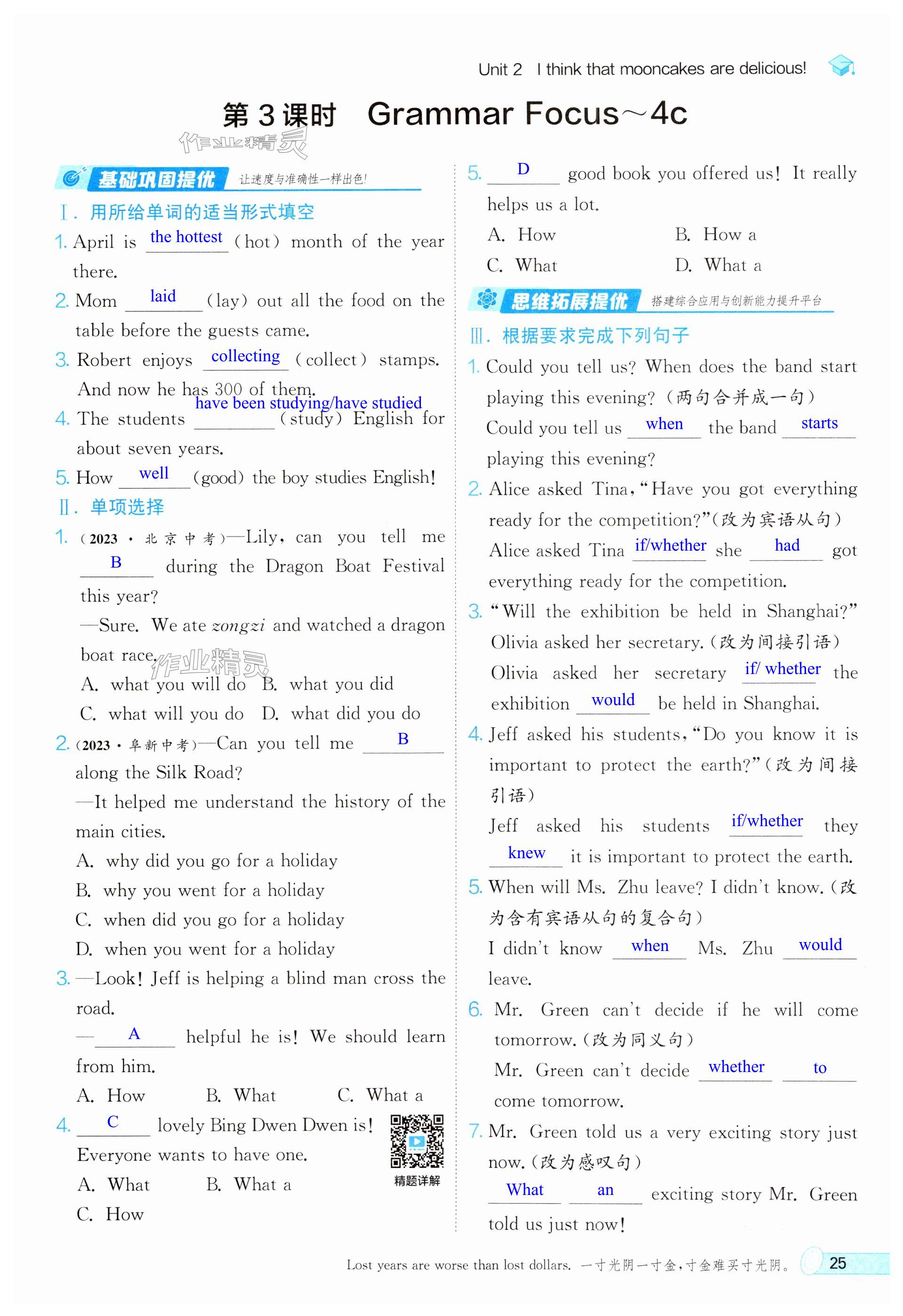 注:目前有些书本章节名称可能整理的还不是很完善,但都是按照顺序排列的,请同学们按照顺序仔细查找。练习册 2024年实验班提优训练九年级英语上册人教版 答案主要是用来给同学们做完题方便对答案用的,请勿直接抄袭。