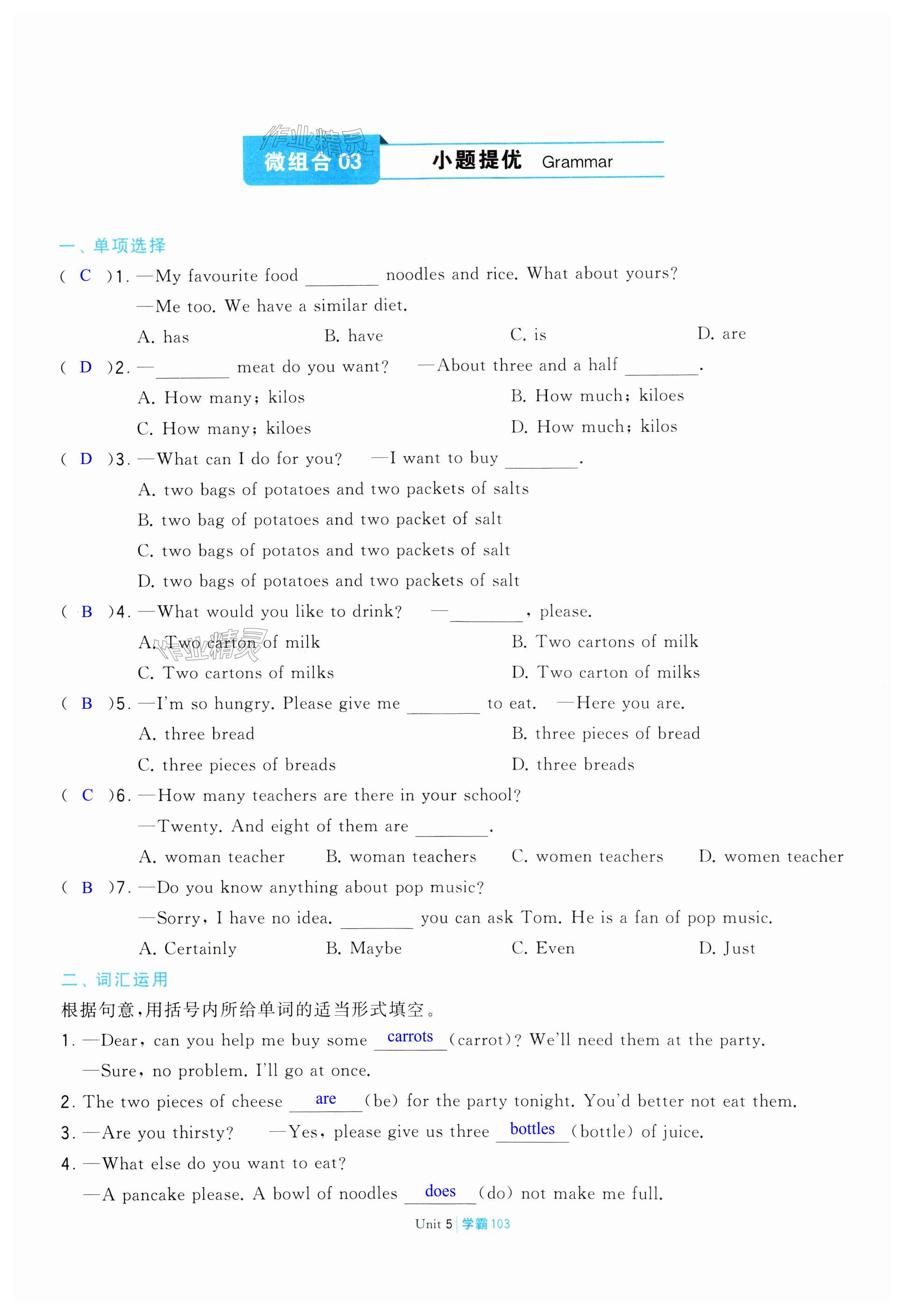 注:目前有些书本章节名称可能整理的还不是很完善,但都是按照顺序排列的,请同学们按照顺序仔细查找。练习册 2024年学霸组合训练七年级英语上册译林版泰州专版 答案主要是用来给同学们做完题方便对答案用的,请勿直接抄袭。