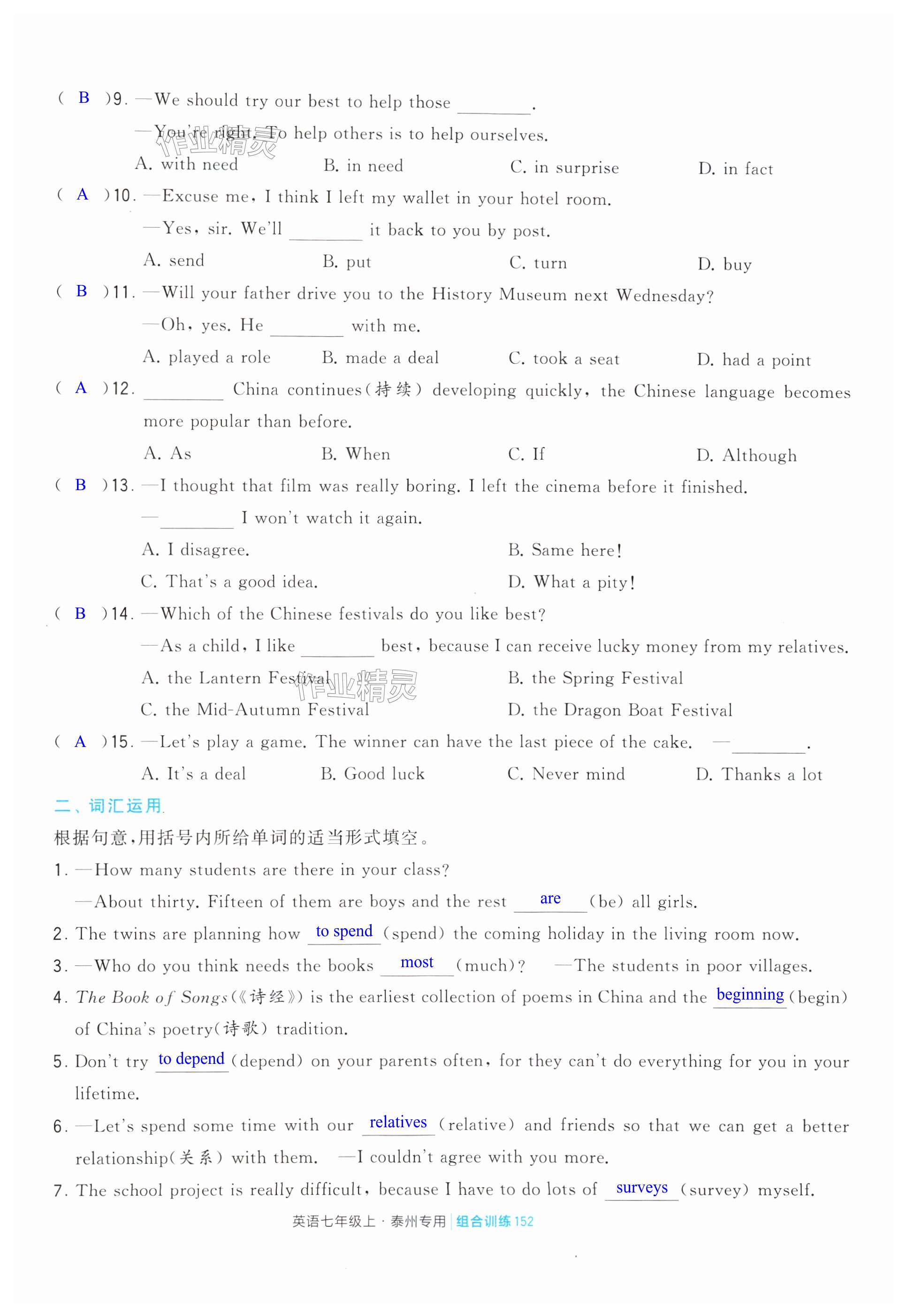 注:目前有些书本章节名称可能整理的还不是很完善,但都是按照顺序排列的,请同学们按照顺序仔细查找。练习册 2024年学霸组合训练七年级英语上册译林版泰州专版 答案主要是用来给同学们做完题方便对答案用的,请勿直接抄袭。
