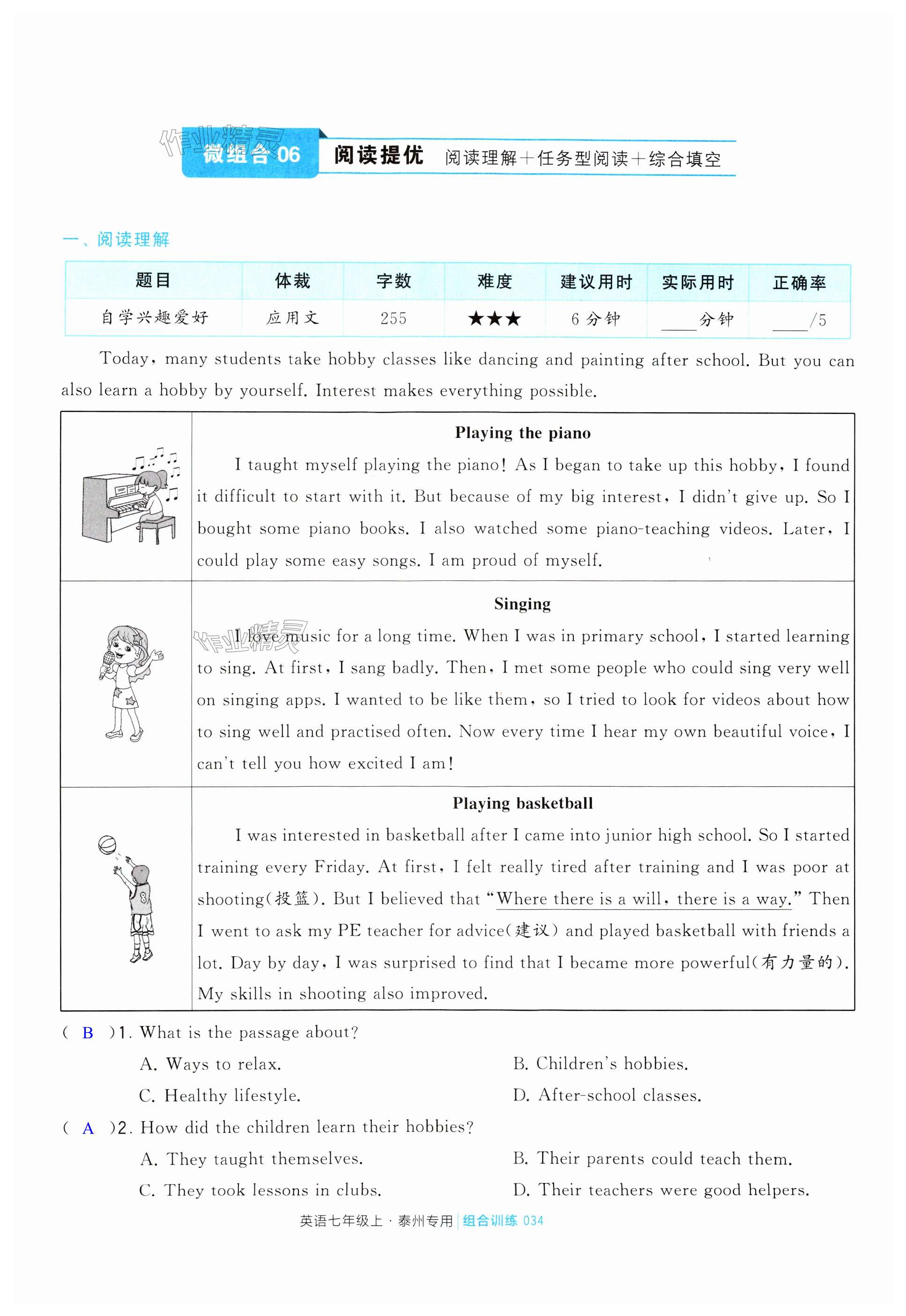注:目前有些书本章节名称可能整理的还不是很完善,但都是按照顺序排列的,请同学们按照顺序仔细查找。练习册 2024年学霸组合训练七年级英语上册译林版泰州专版 答案主要是用来给同学们做完题方便对答案用的,请勿直接抄袭。