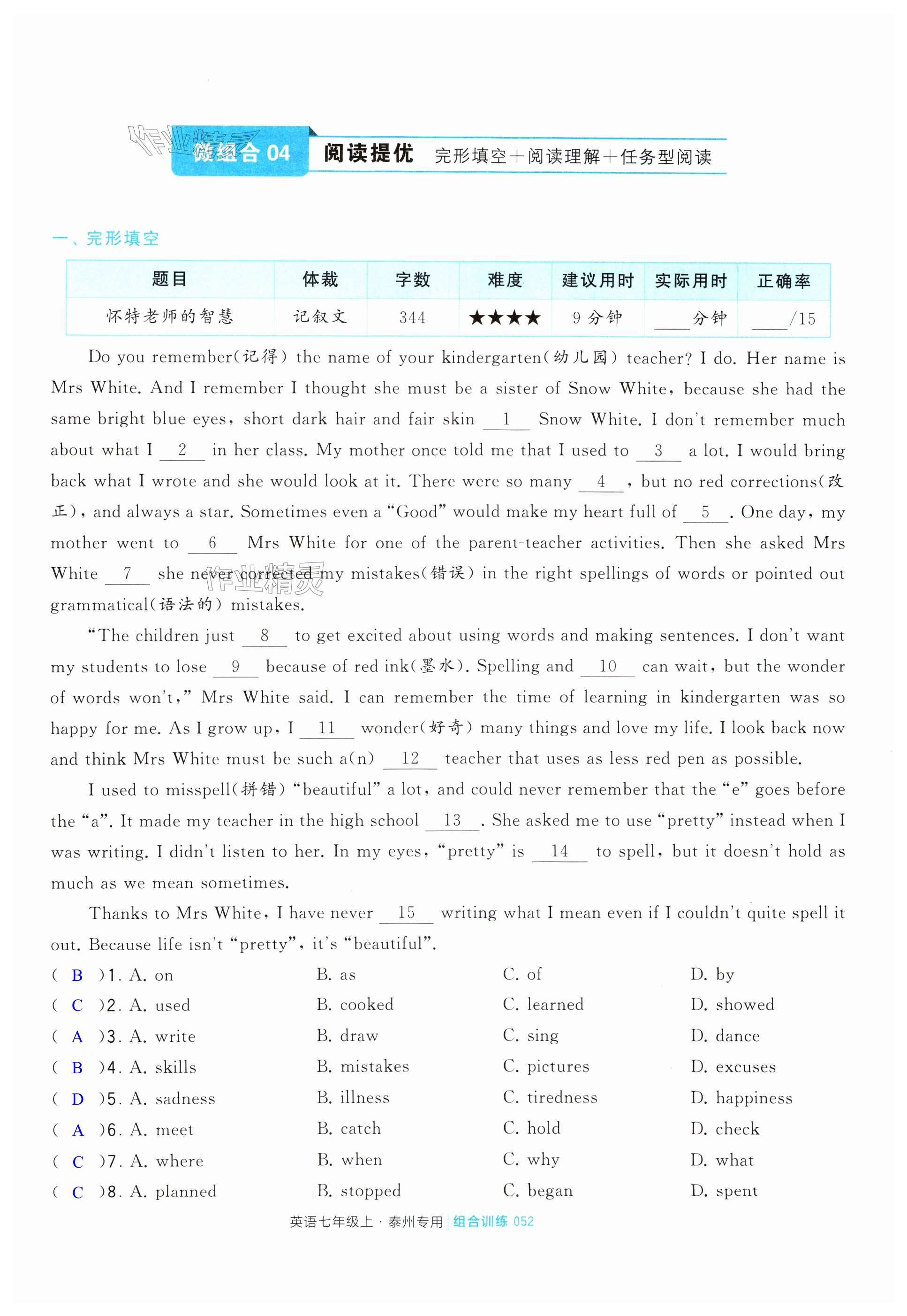 2024年学霸组合训练七年级英语上册译林版泰州专版