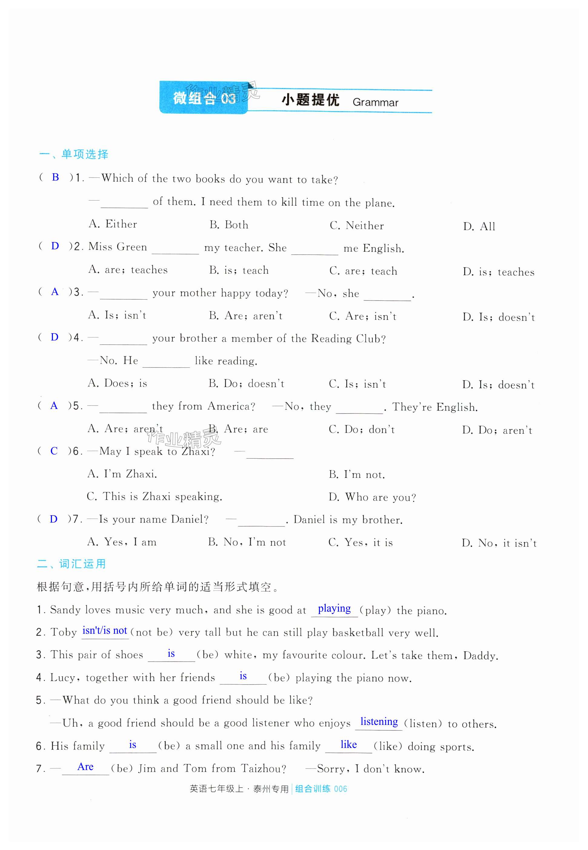 注:目前有些书本章节名称可能整理的还不是很完善,但都是按照顺序排列的,请同学们按照顺序仔细查找。练习册 2024年学霸组合训练七年级英语上册译林版泰州专版 答案主要是用来给同学们做完题方便对答案用的,请勿直接抄袭。