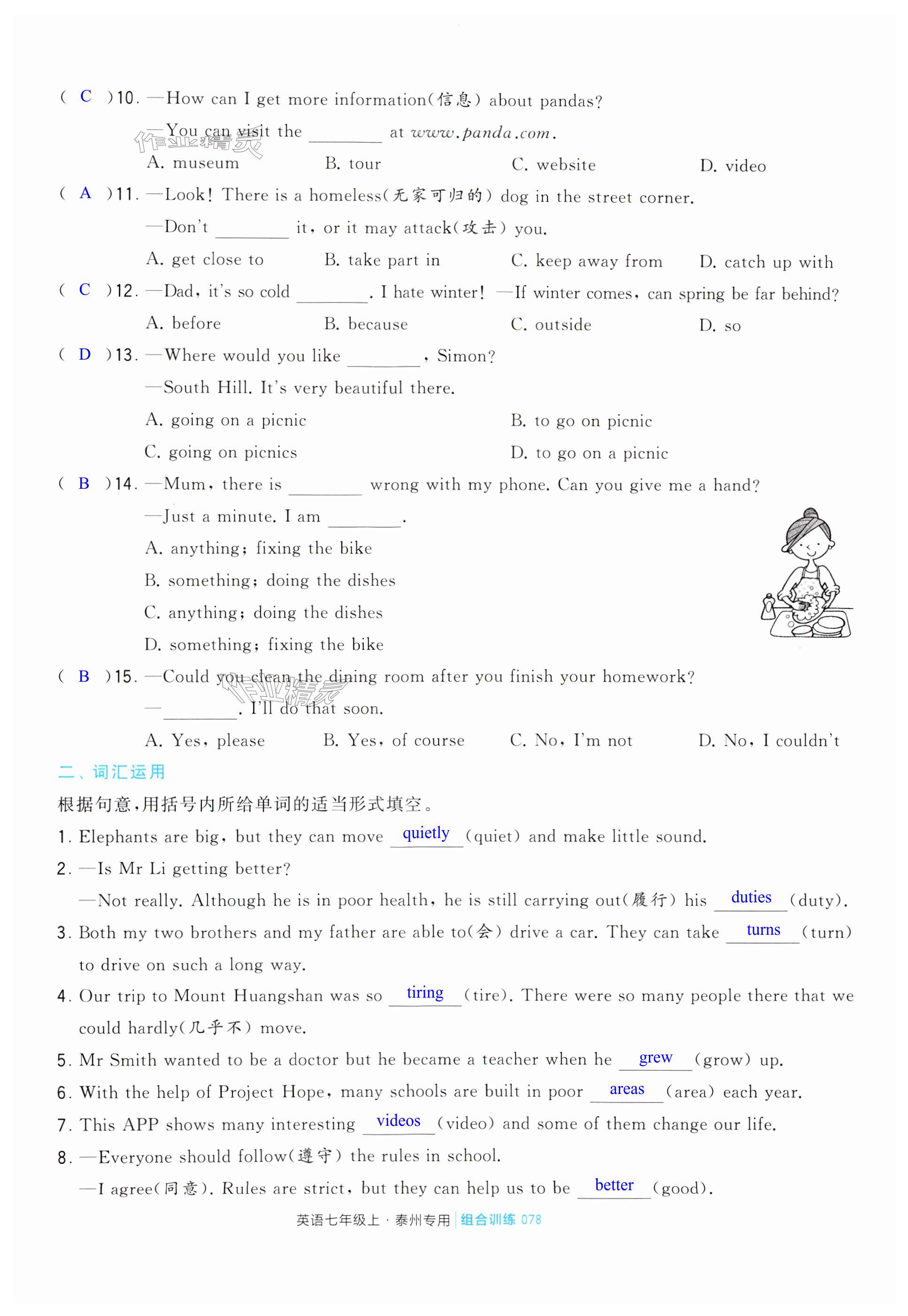 注:目前有些书本章节名称可能整理的还不是很完善,但都是按照顺序排列的,请同学们按照顺序仔细查找。练习册 2024年学霸组合训练七年级英语上册译林版泰州专版 答案主要是用来给同学们做完题方便对答案用的,请勿直接抄袭。