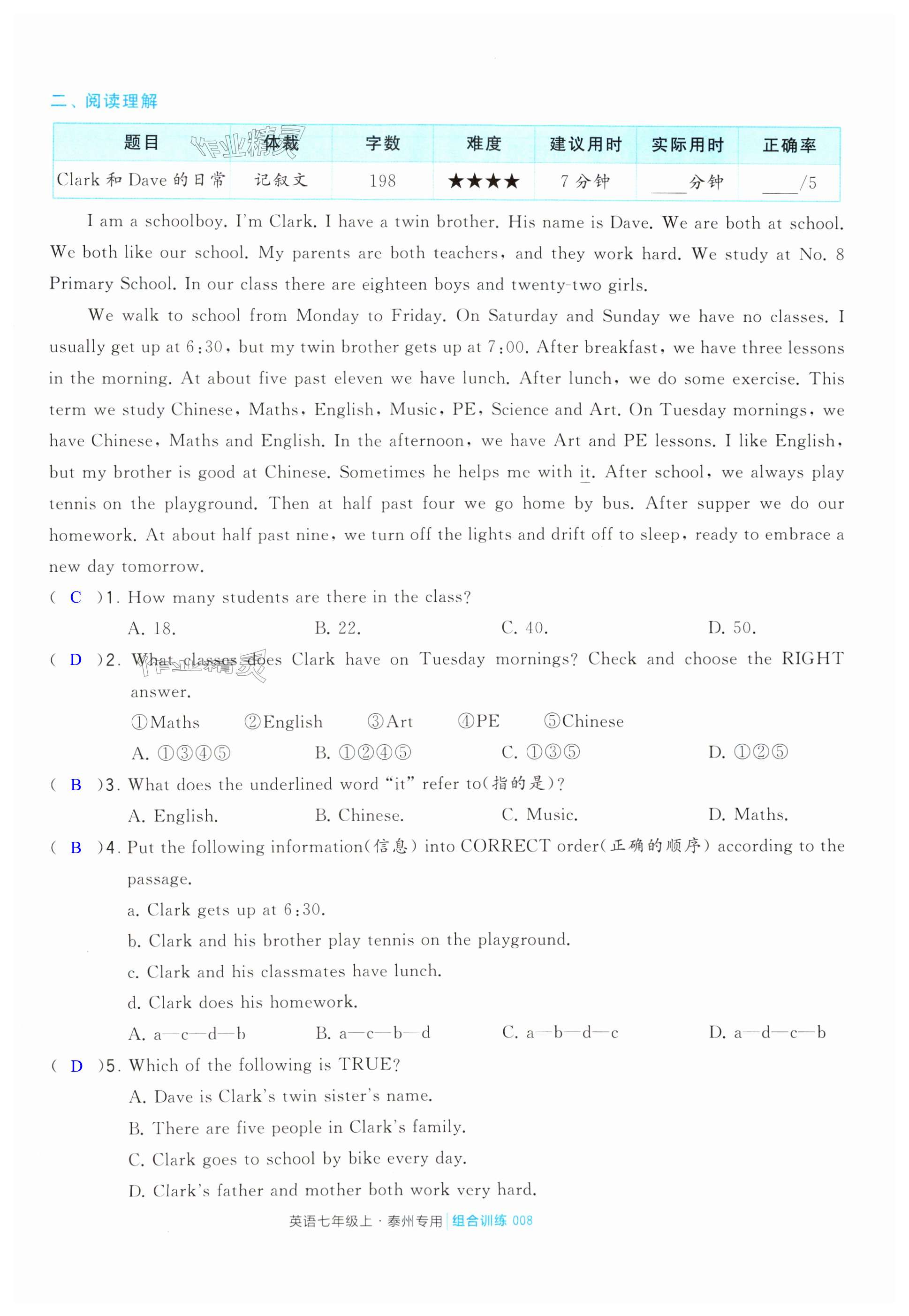 注:目前有些书本章节名称可能整理的还不是很完善,但都是按照顺序排列的,请同学们按照顺序仔细查找。练习册 2024年学霸组合训练七年级英语上册译林版泰州专版 答案主要是用来给同学们做完题方便对答案用的,请勿直接抄袭。