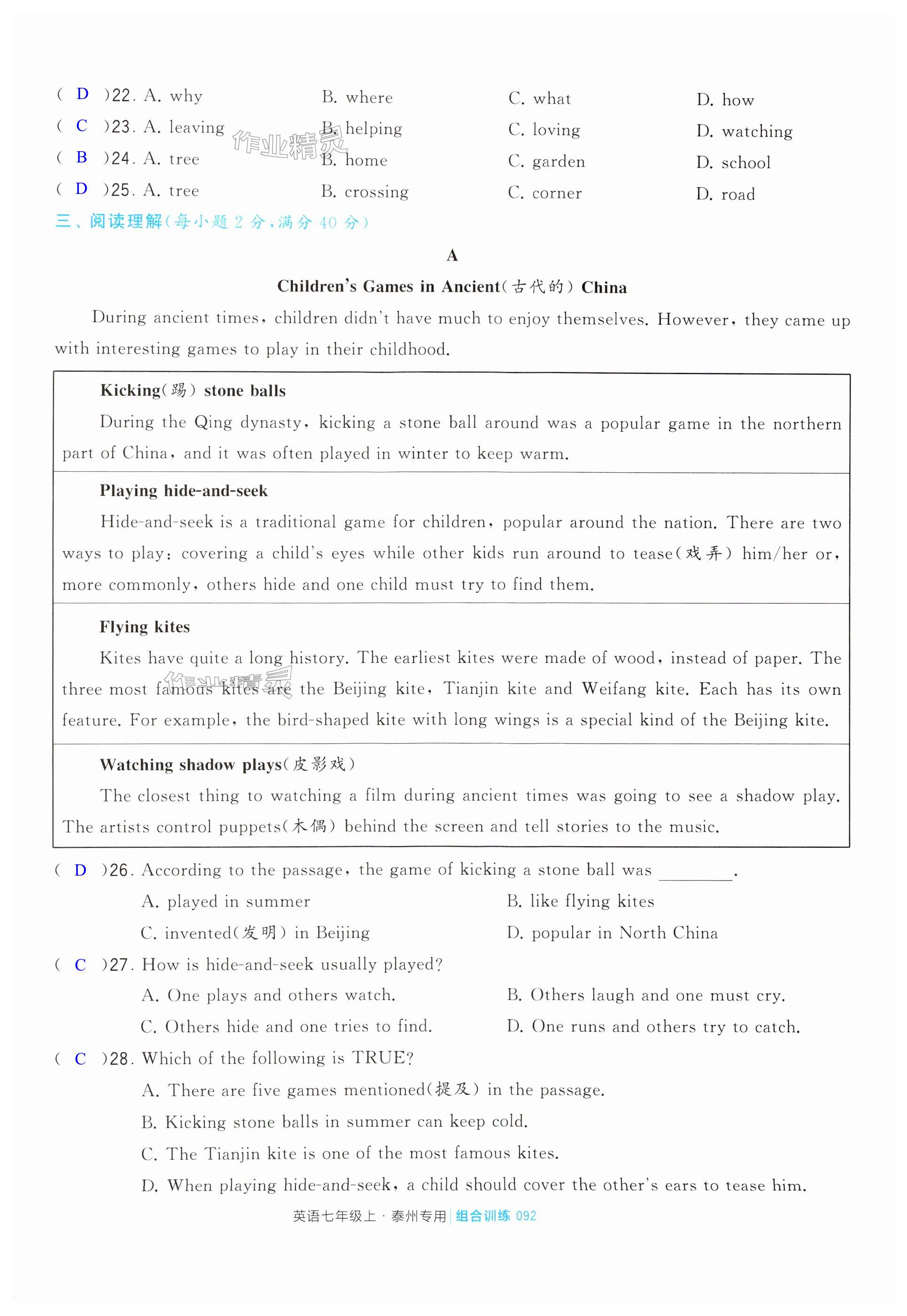 注:目前有些书本章节名称可能整理的还不是很完善,但都是按照顺序排列的,请同学们按照顺序仔细查找。练习册 2024年学霸组合训练七年级英语上册译林版泰州专版 答案主要是用来给同学们做完题方便对答案用的,请勿直接抄袭。
