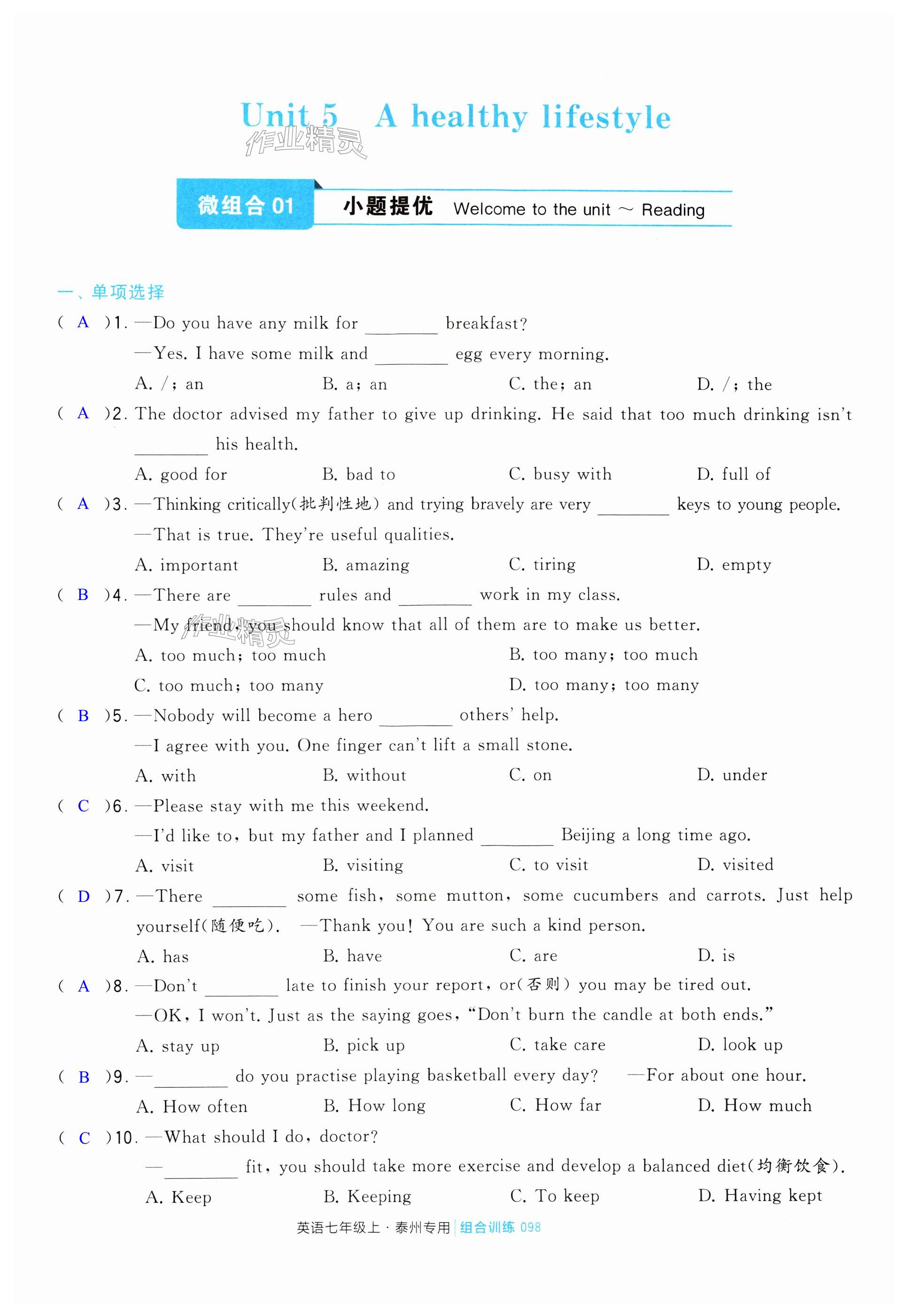 注:目前有些书本章节名称可能整理的还不是很完善,但都是按照顺序排列的,请同学们按照顺序仔细查找。练习册 2024年学霸组合训练七年级英语上册译林版泰州专版 答案主要是用来给同学们做完题方便对答案用的,请勿直接抄袭。