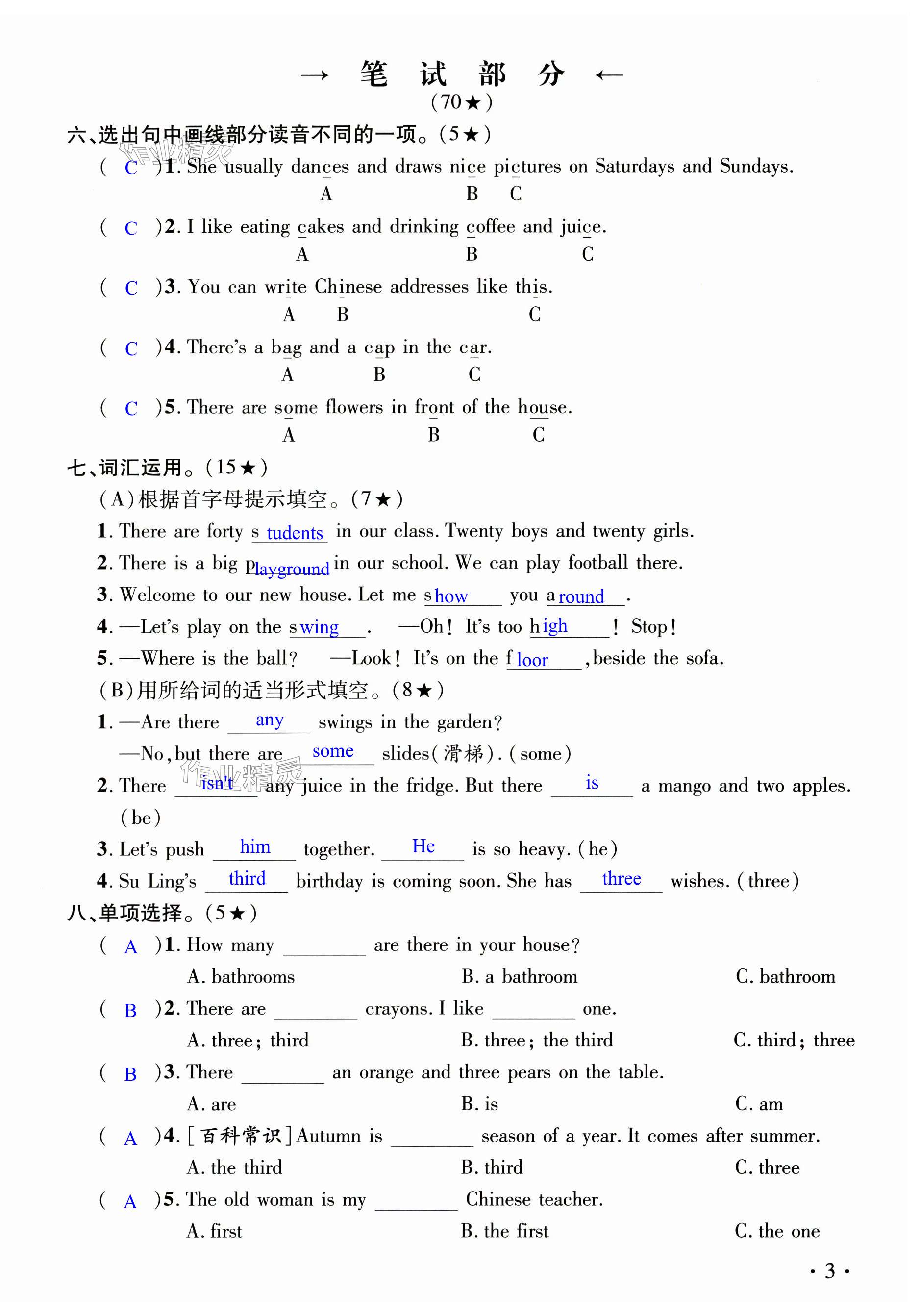 注:目前有些书本章节名称可能整理的还不是很完善,但都是按照顺序排列的,请同学们按照顺序仔细查找。练习册 2024年细解巧练五年级英语上册译林版 答案主要是用来给同学们做完题方便对答案用的,请勿直接抄袭。