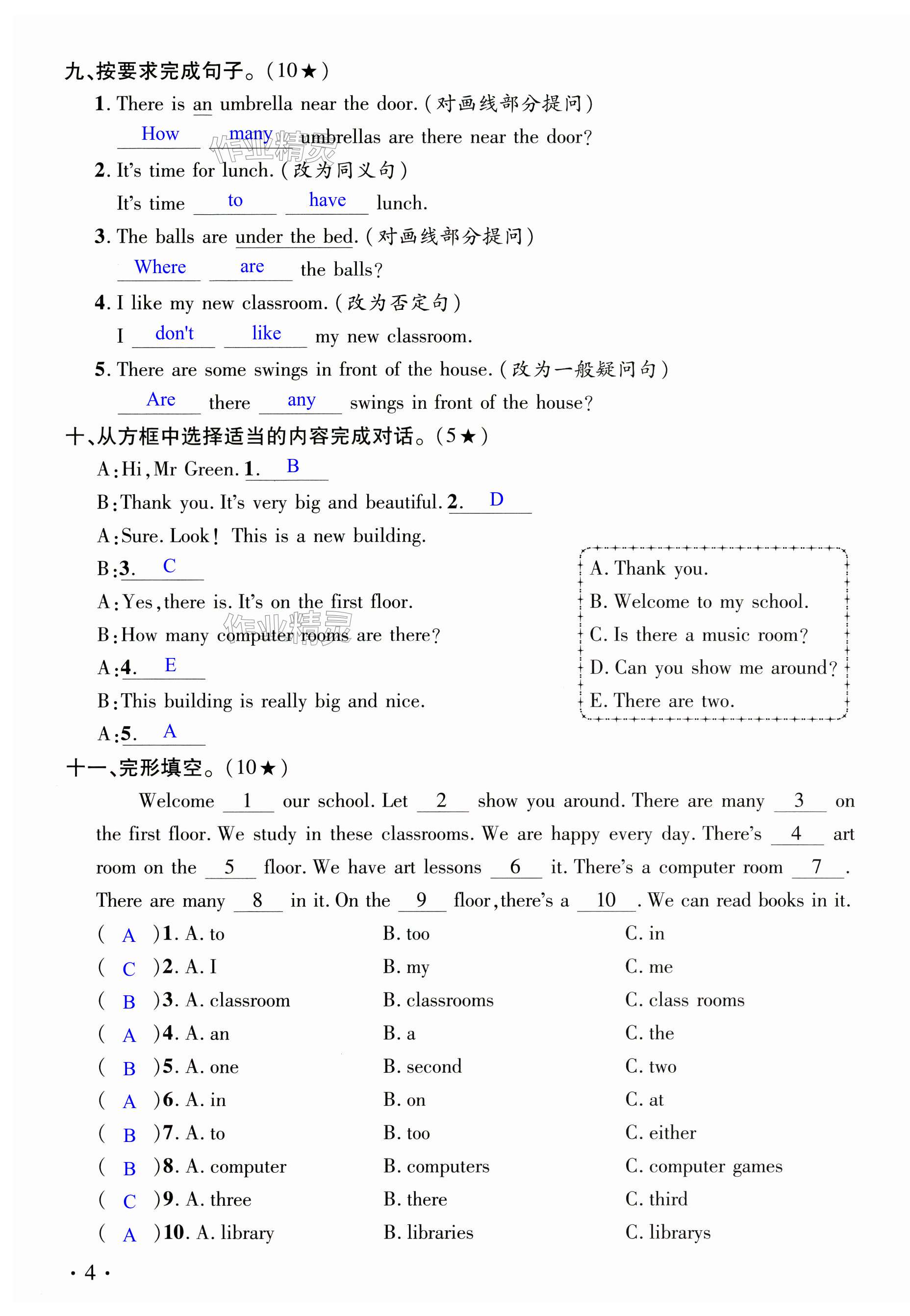 注:目前有些书本章节名称可能整理的还不是很完善,但都是按照顺序排列的,请同学们按照顺序仔细查找。练习册 2024年细解巧练五年级英语上册译林版 答案主要是用来给同学们做完题方便对答案用的,请勿直接抄袭。
