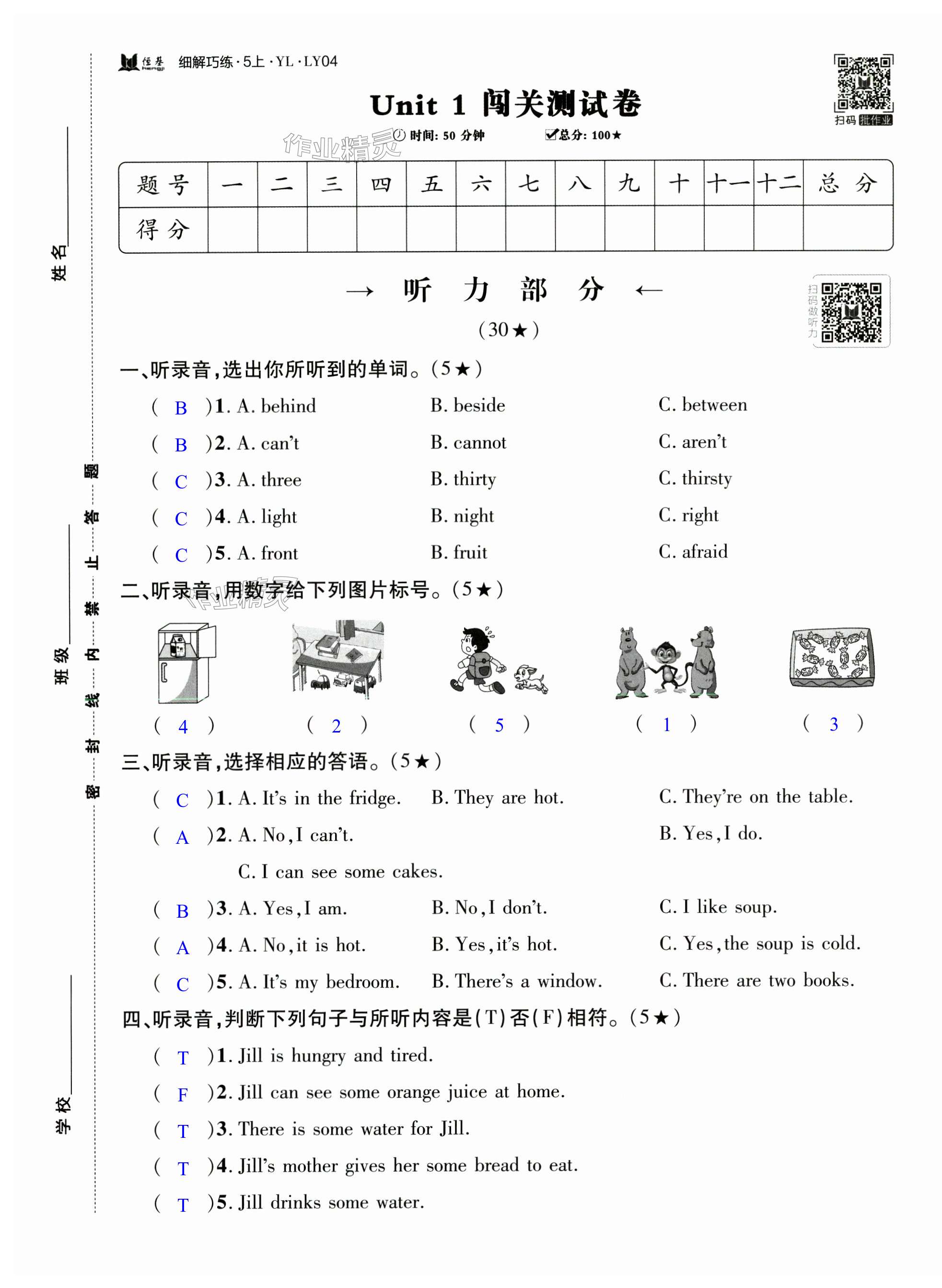 注:目前有些书本章节名称可能整理的还不是很完善,但都是按照顺序排列的,请同学们按照顺序仔细查找。练习册 2024年细解巧练五年级英语上册译林版 答案主要是用来给同学们做完题方便对答案用的,请勿直接抄袭。