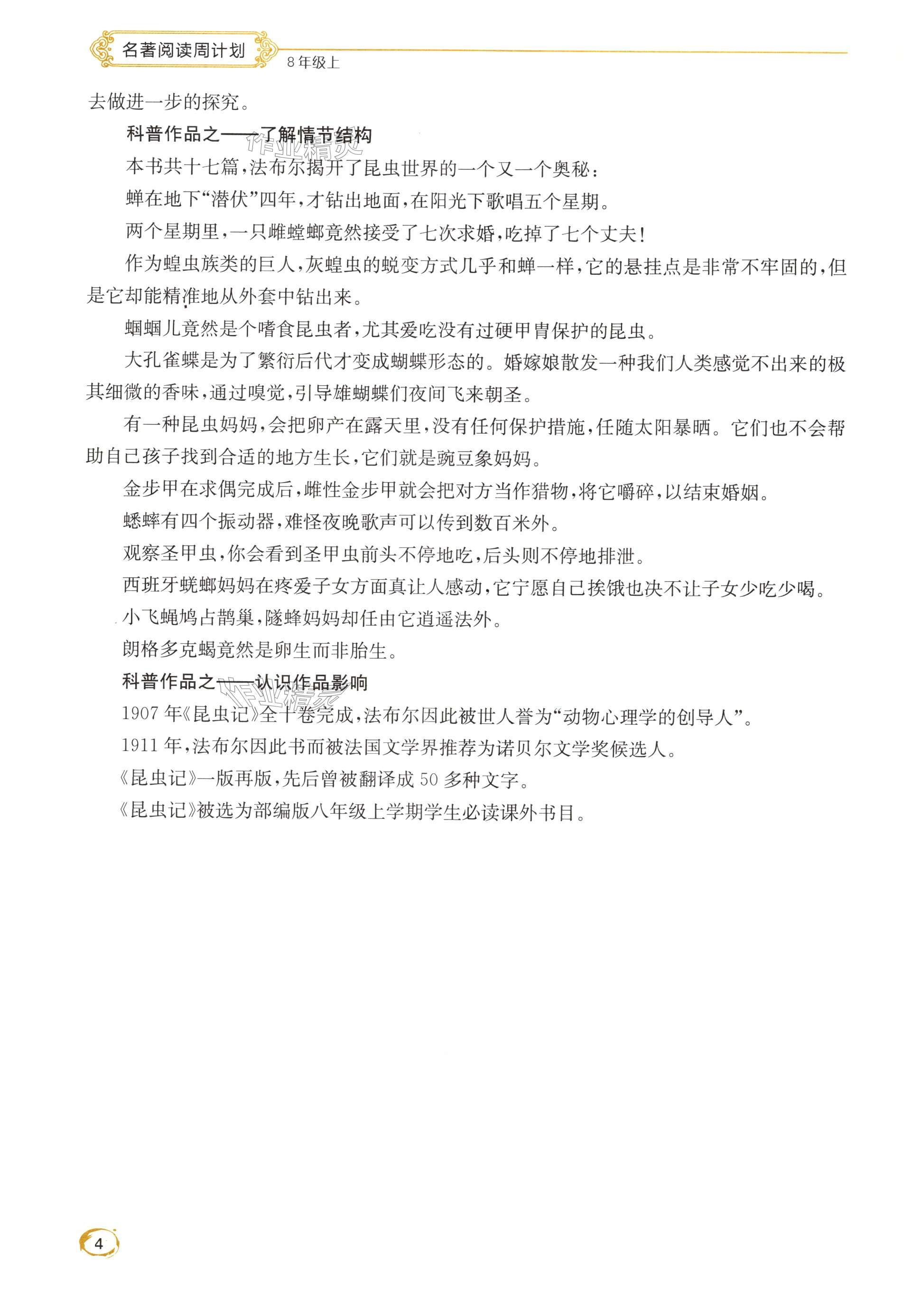 注:目前有些书本章节名称可能整理的还不是很完善,但都是按照顺序排列的,请同学们按照顺序仔细查找。练习册 2024年名著阅读周计划八年级上册语文人教版 答案主要是用来给同学们做完题方便对答案用的,请勿直接抄袭。