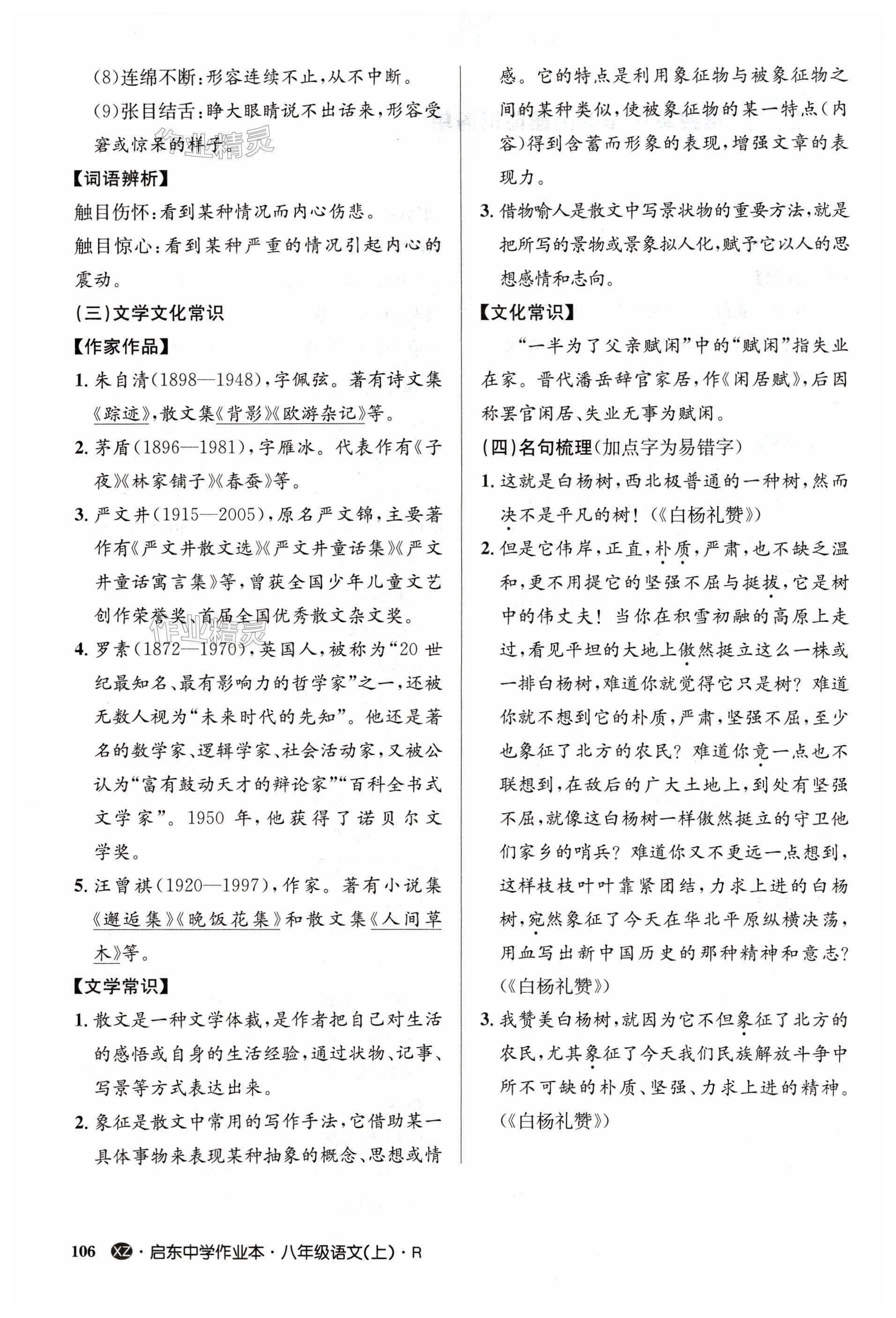 注:目前有些书本章节名称可能整理的还不是很完善,但都是按照顺序排列的,请同学们按照顺序仔细查找。练习册 2024年启东中学作业本八年级语文上册人教版徐州专版 答案主要是用来给同学们做完题方便对答案用的,请勿直接抄袭。