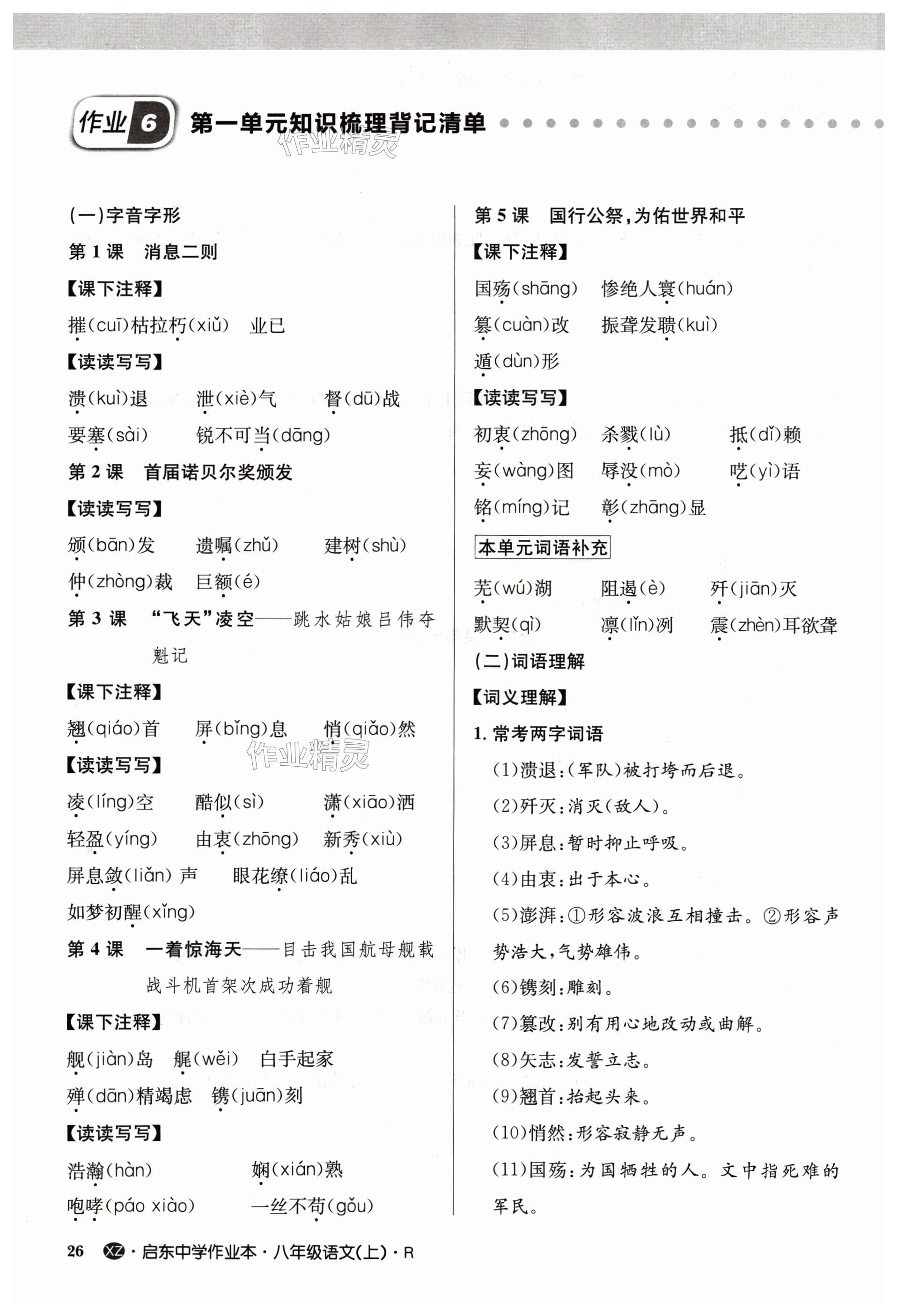 注:目前有些书本章节名称可能整理的还不是很完善,但都是按照顺序排列的,请同学们按照顺序仔细查找。练习册 2024年启东中学作业本八年级语文上册人教版徐州专版 答案主要是用来给同学们做完题方便对答案用的,请勿直接抄袭。