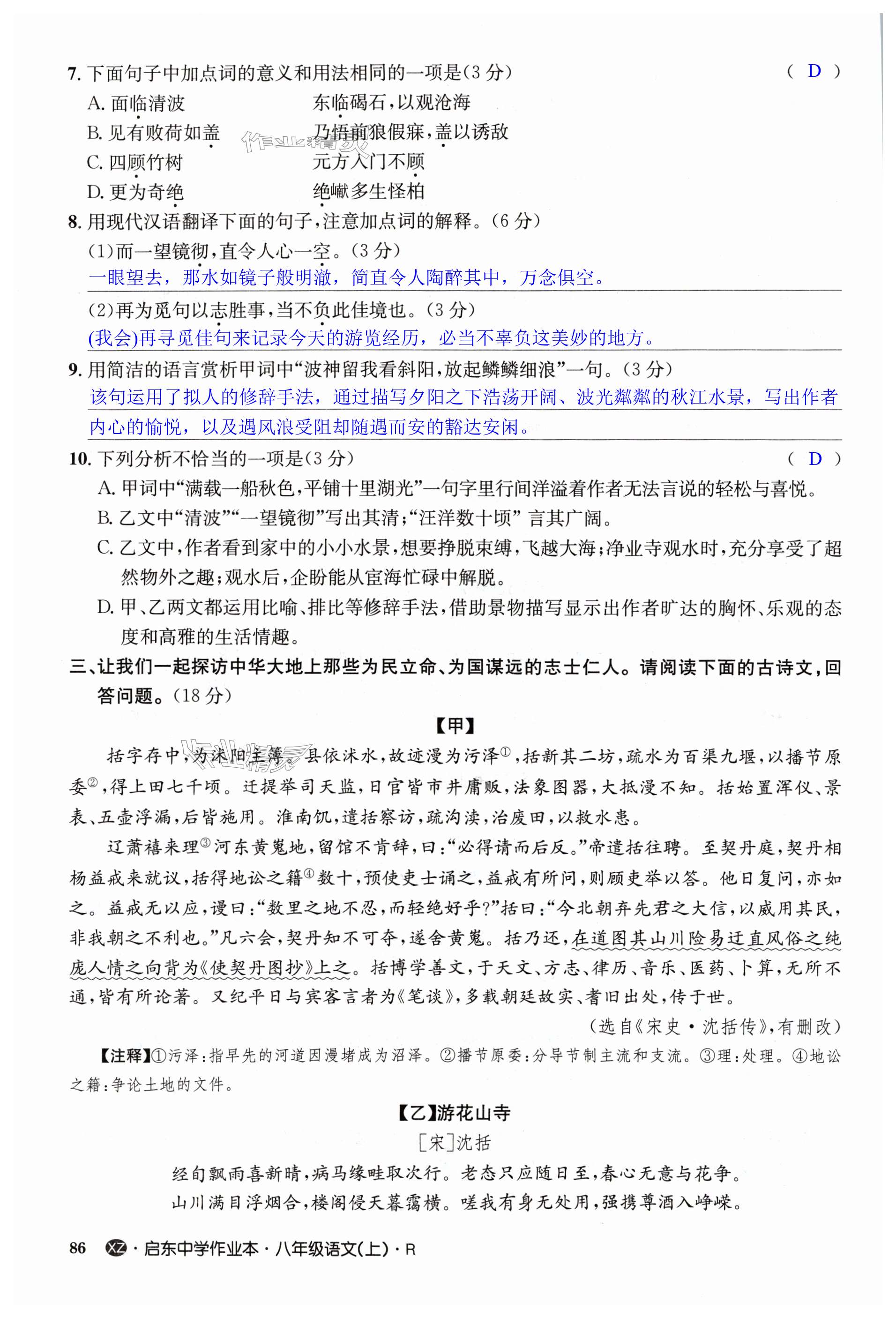 注:目前有些书本章节名称可能整理的还不是很完善,但都是按照顺序排列的,请同学们按照顺序仔细查找。练习册 2024年启东中学作业本八年级语文上册人教版徐州专版 答案主要是用来给同学们做完题方便对答案用的,请勿直接抄袭。