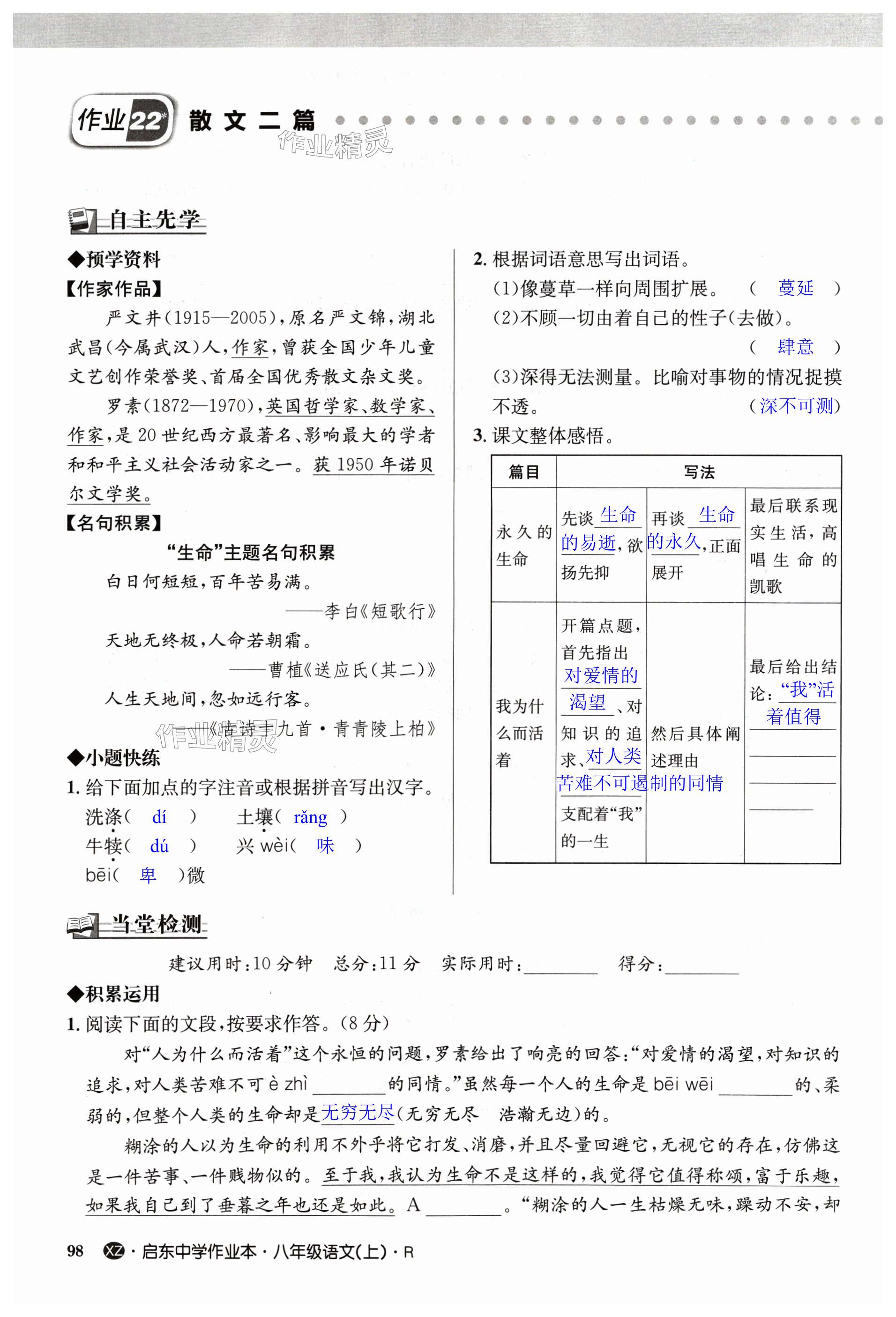 注:目前有些书本章节名称可能整理的还不是很完善,但都是按照顺序排列的,请同学们按照顺序仔细查找。练习册 2024年启东中学作业本八年级语文上册人教版徐州专版 答案主要是用来给同学们做完题方便对答案用的,请勿直接抄袭。