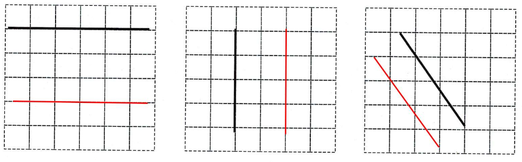 1. 先判断下面几组直线的位置关系,再填写在括号里。