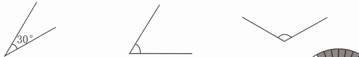 2. 根据下图第一个角的度数,估一估右边两个角的度数。