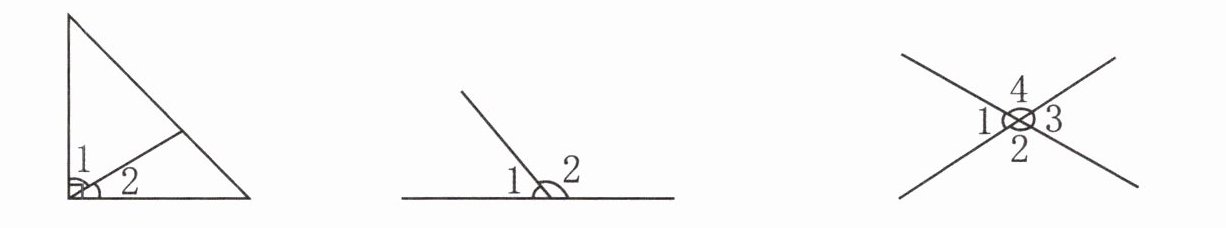3. 右图中,$\angle 1= $ ( )$^\circ$,$\angle 2= $ ( )$^\circ$。请在图中找出一个$100^\circ$的角,并标上$\angle 3$。