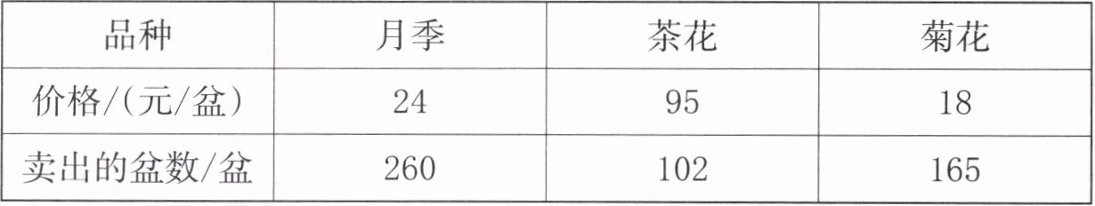 | 价格/(元/盆) | 24 | 95 | 18 |