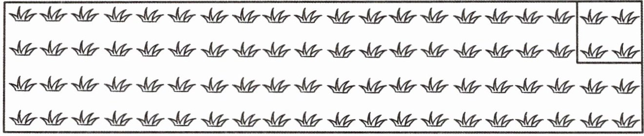 3. 下图是一块长方形草地,图中的方框表示2平方米。估一估,这块草地的面积大约是( )平方米。