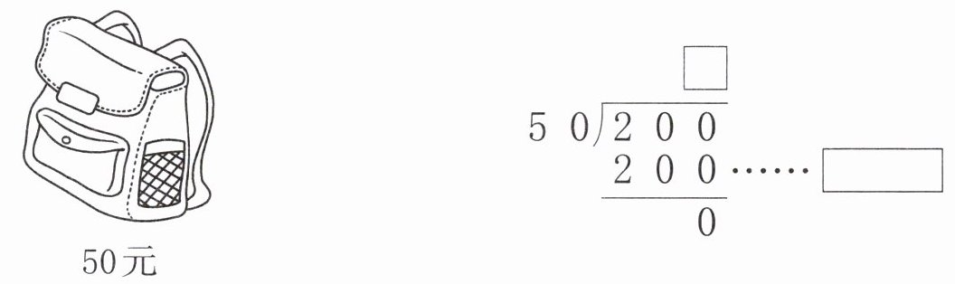 $\begin{array}{r} \Box \\ 50\enclose{longdiv} {200}\\ 200\\ \hline 0\end{array} $……□