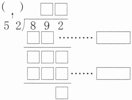 $\begin{array}{r} (\quad)\quad □□ \\ 52\enclose{longdiv} {892}…………\\ □□\quad \overline{\quad\quad}\\ \hline □□□ \\ □□□\quad \overline{\quad\quad}\\ \hline □\end{array}\\ □□\quad \overline{\quad\quad}\\ \hline □□□ \\ □□□\quad \overline{\quad\quad}\\ \hline □ $