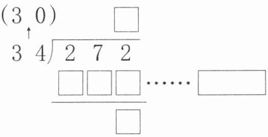 $\begin{array}{r} \Box \\ 34\enclose{longdiv} {272}\\ □□□\\ \hline □\end{array}\\ □□□\\ \hline □ $……$\boxed{}$