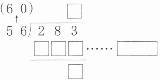 $\begin{array}{r} \Box \\ 56\enclose{longdiv} {283}\\ □□□\\ \hline □\end{array}\\ □□□\\ \hline □ $……$\boxed{}$