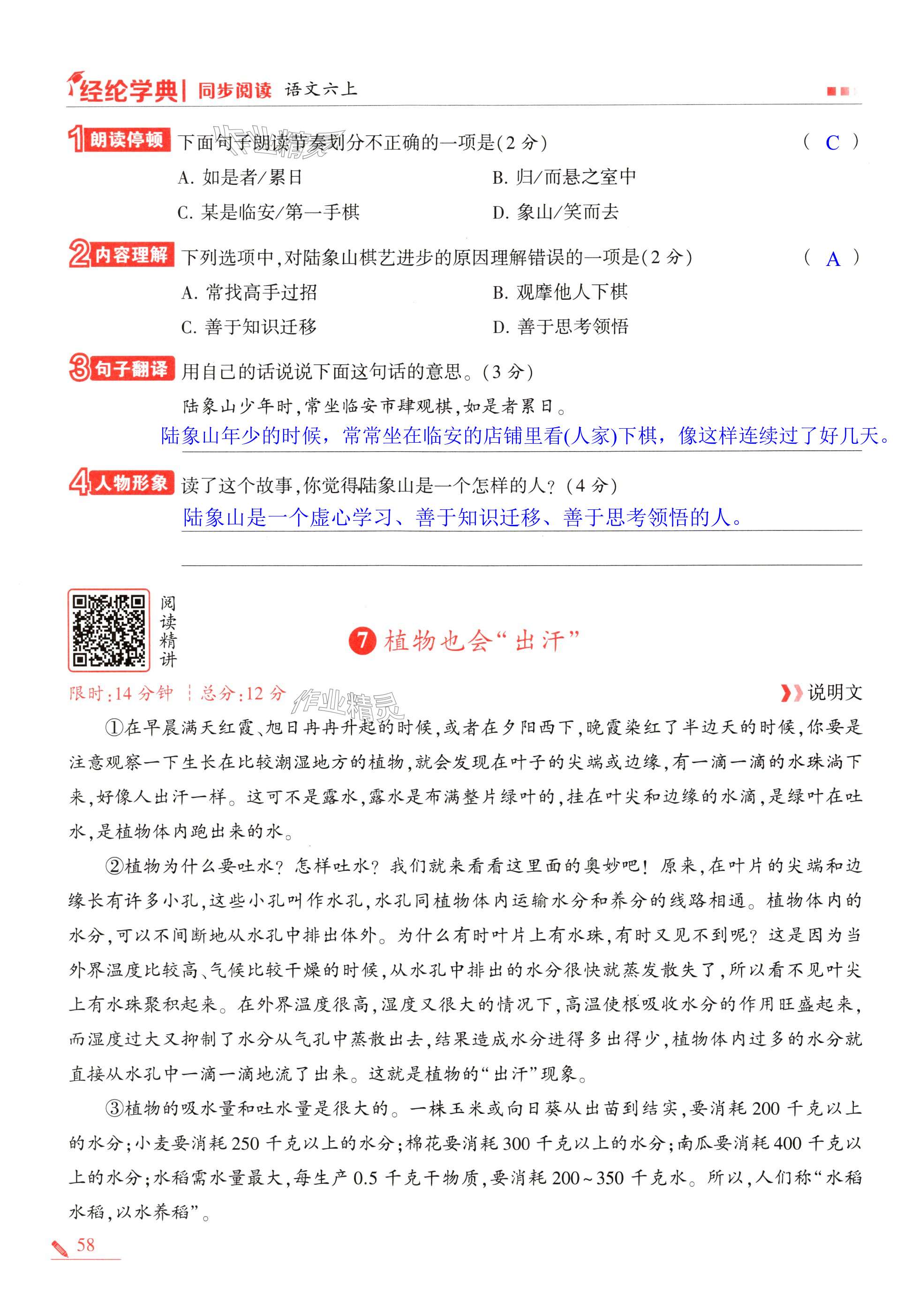 注:目前有些书本章节名称可能整理的还不是很完善,但都是按照顺序排列的,请同学们按照顺序仔细查找。练习册 2024年经纶学典学霸同步阅读六年级语文上册人教版 答案主要是用来给同学们做完题方便对答案用的,请勿直接抄袭。