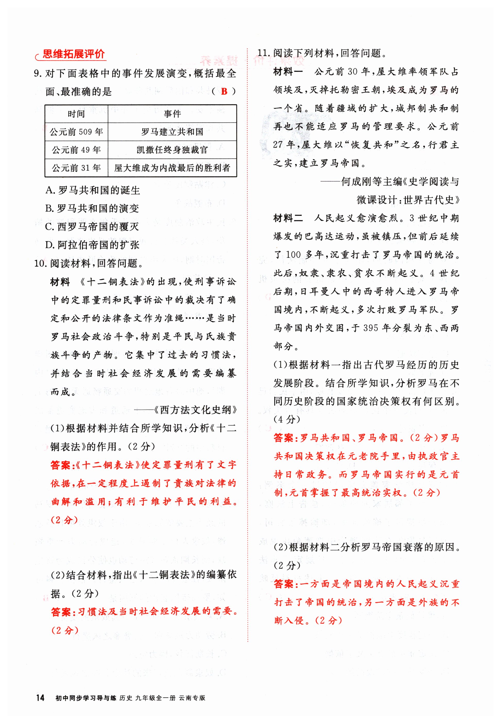 2024年初中同步学习导与练导学探究案九年级历史全一册人教版云南专版