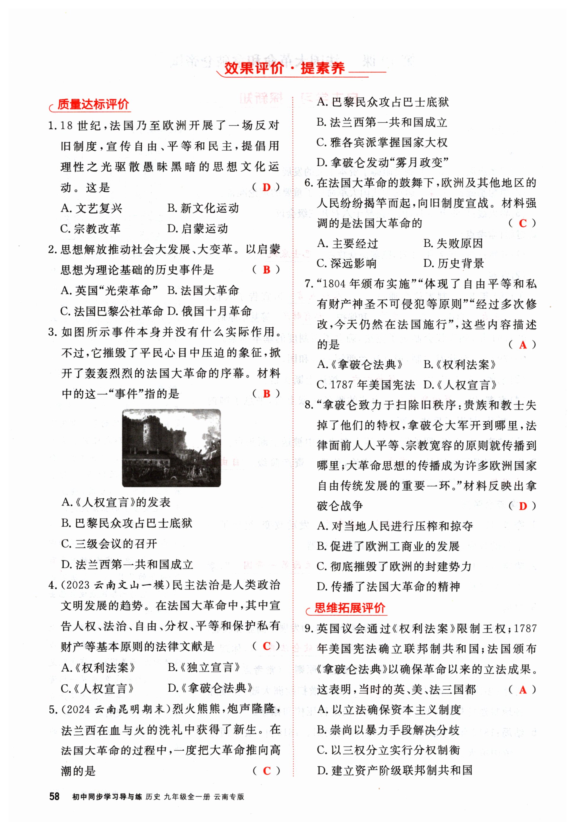 注:目前有些书本章节名称可能整理的还不是很完善,但都是按照顺序排列的,请同学们按照顺序仔细查找。练习册 2024年初中同步学习导与练导学探究案九年级历史全一册人教版云南专版 答案主要是用来给同学们做完题方便对答案用的,请勿直接抄袭。