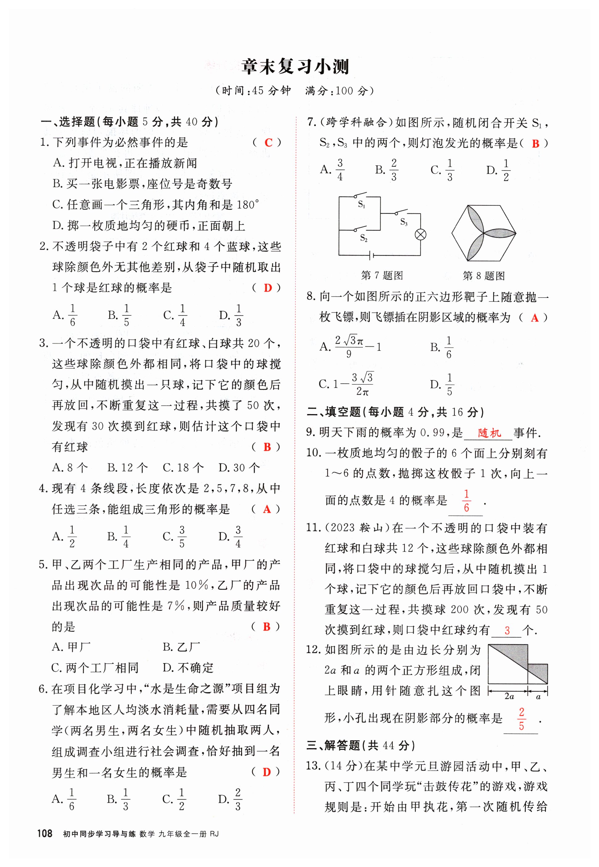 注:目前有些书本章节名称可能整理的还不是很完善,但都是按照顺序排列的,请同学们按照顺序仔细查找。练习册 2024年初中同步学习导与练导学探究案九年级数学全一册人教版 答案主要是用来给同学们做完题方便对答案用的,请勿直接抄袭。