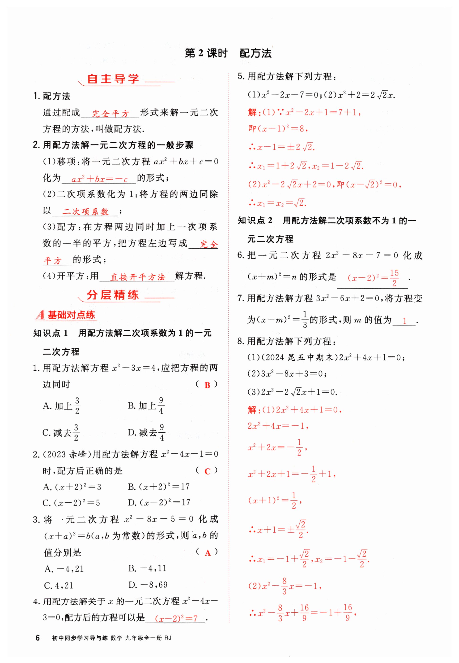 2024年初中同步学习导与练导学探究案九年级数学全一册人教版