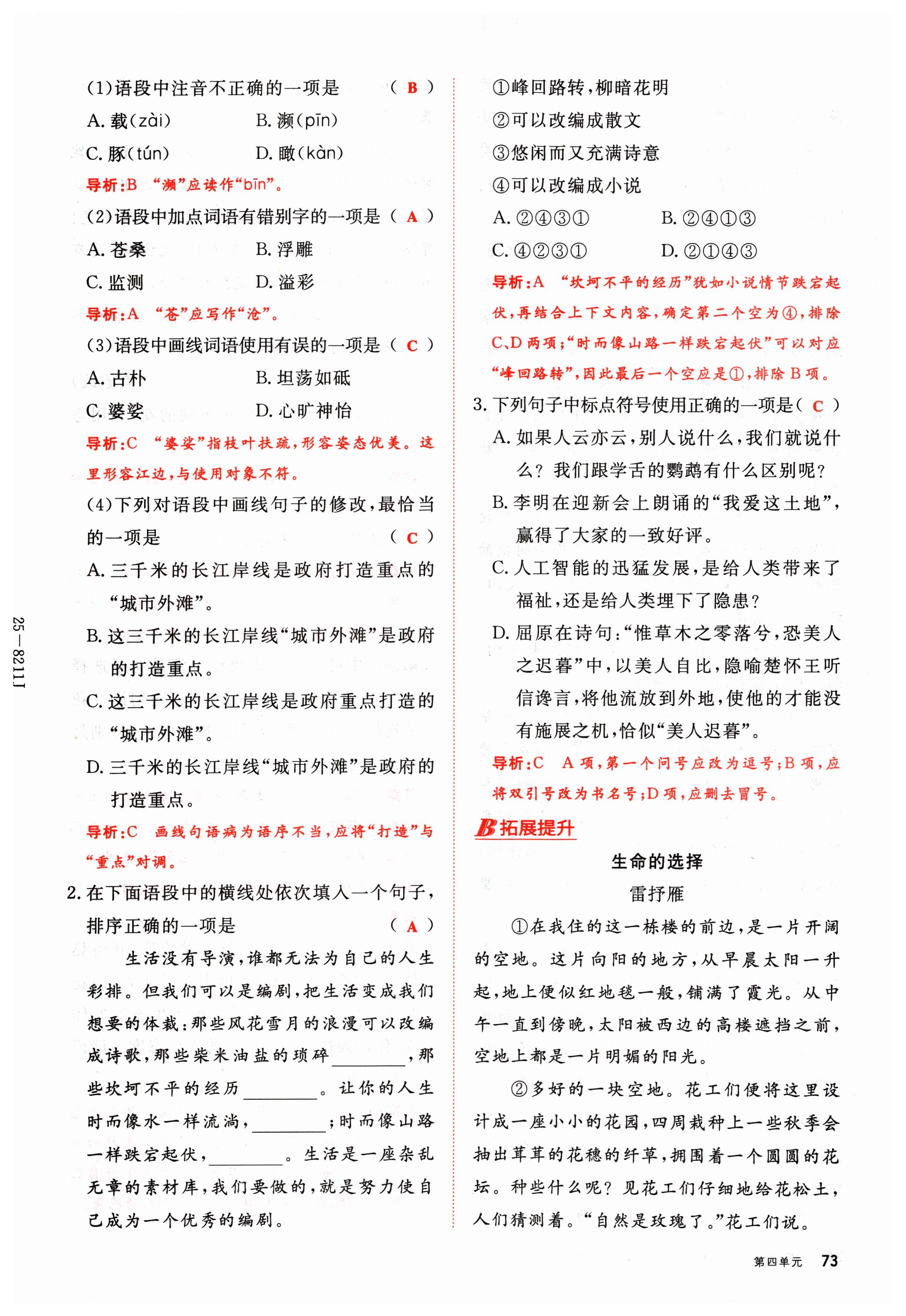 注:目前有些书本章节名称可能整理的还不是很完善,但都是按照顺序排列的,请同学们按照顺序仔细查找。练习册 2024年初中同步学习导与练导学探究案八年级语文上册人教版云南专版 答案主要是用来给同学们做完题方便对答案用的,请勿直接抄袭。