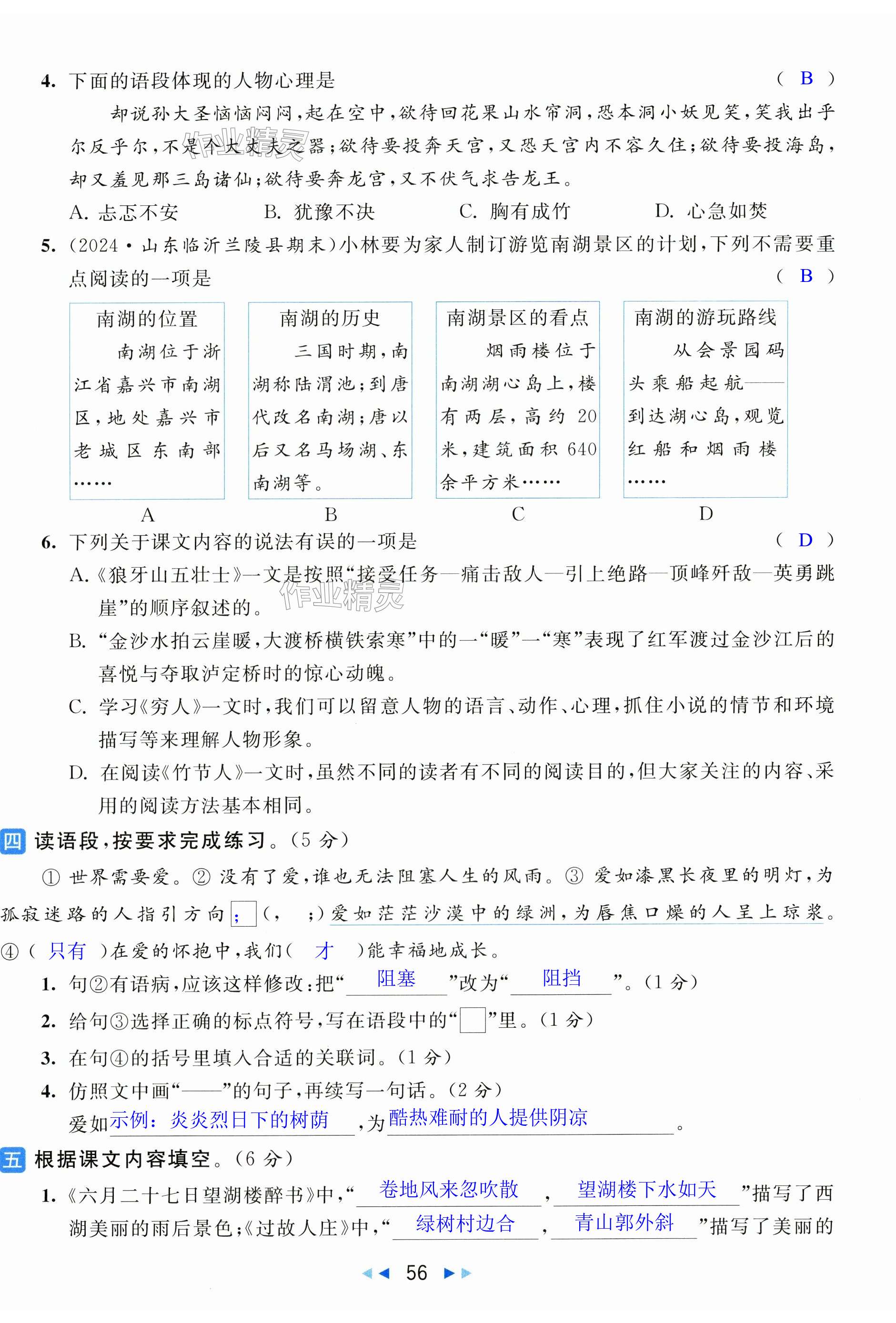 注:目前有些书本章节名称可能整理的还不是很完善,但都是按照顺序排列的,请同学们按照顺序仔细查找。练习册 2024年亮点给力大试卷六年级语文上册人教版 答案主要是用来给同学们做完题方便对答案用的,请勿直接抄袭。