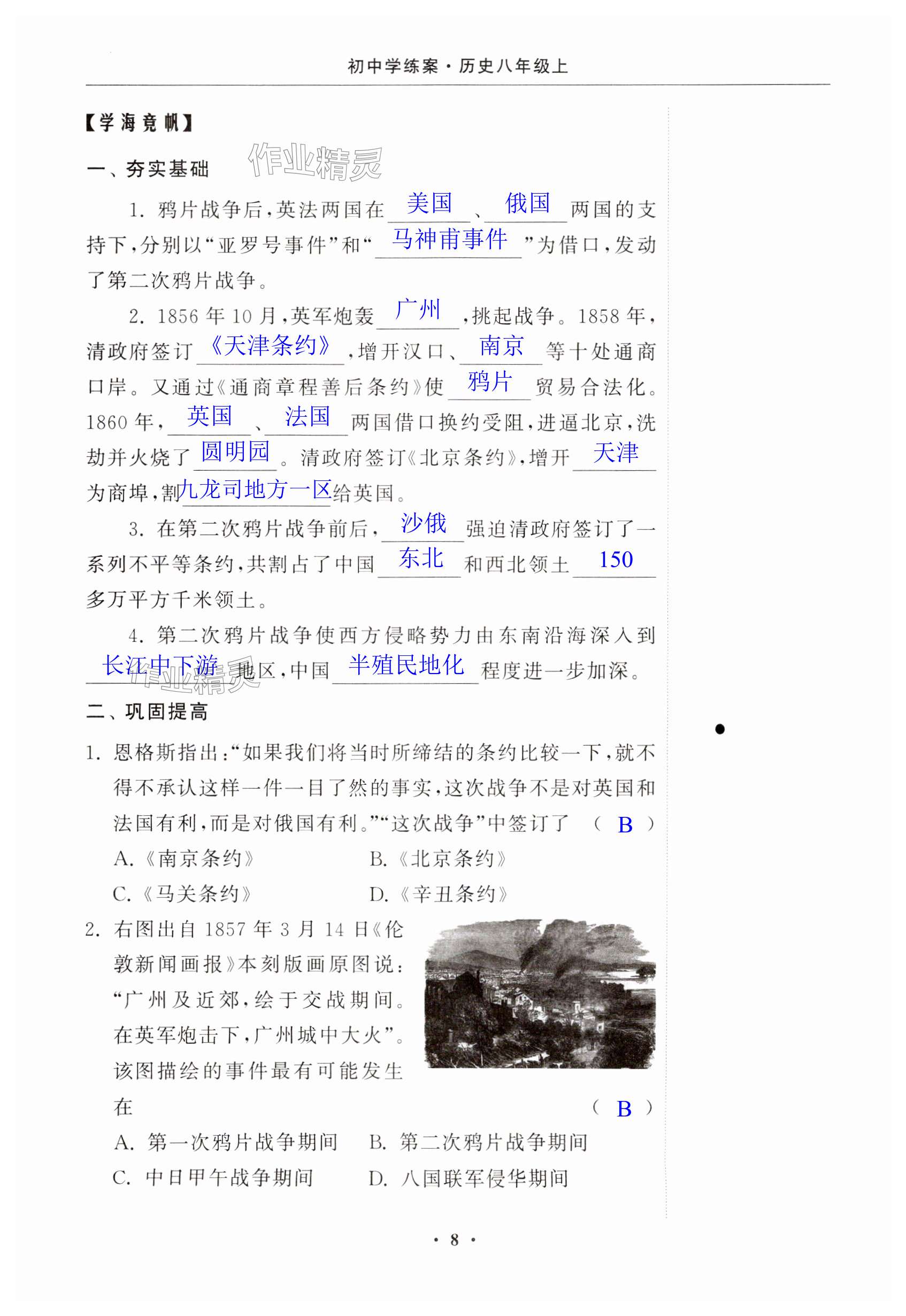 注:目前有些书本章节名称可能整理的还不是很完善,但都是按照顺序排列的,请同学们按照顺序仔细查找。练习册 2024年初中学练案八年级历史上册人教版 答案主要是用来给同学们做完题方便对答案用的,请勿直接抄袭。