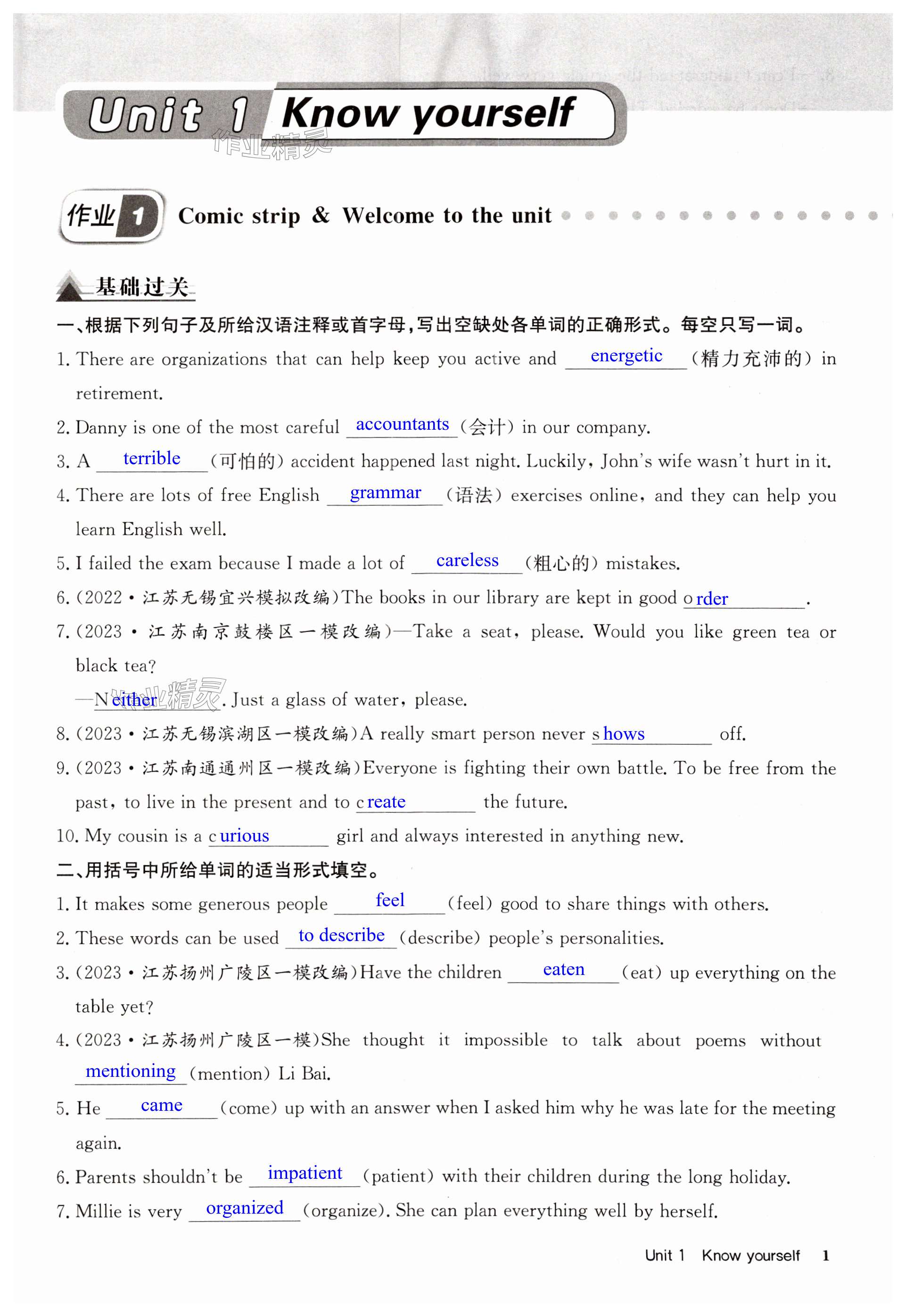注:目前有些书本章节名称可能整理的还不是很完善,但都是按照顺序排列的,请同学们按照顺序仔细查找。练习册 2024年启东中学作业本九年级英语上册译林版苏州专版 答案主要是用来给同学们做完题方便对答案用的,请勿直接抄袭。