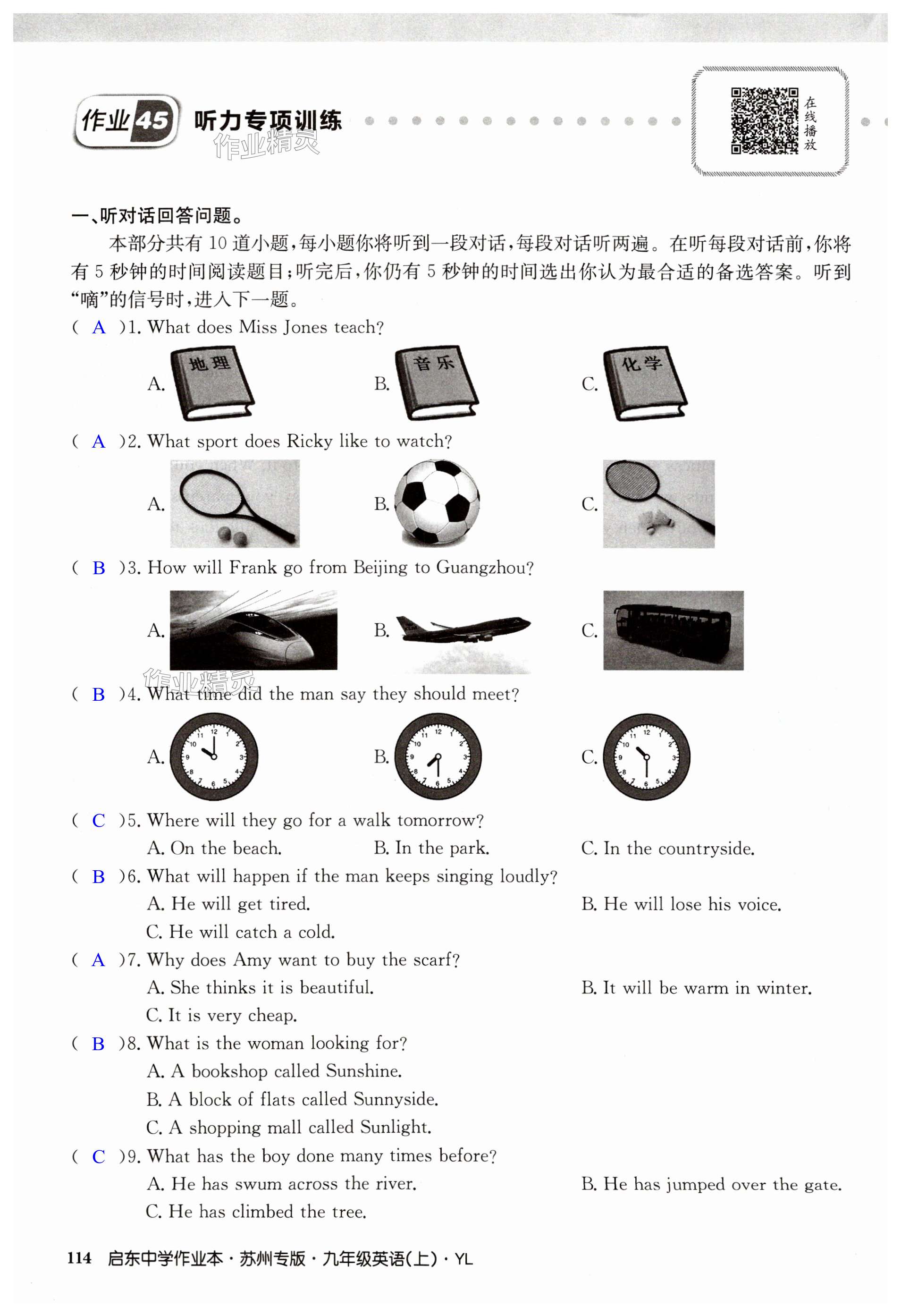 注:目前有些书本章节名称可能整理的还不是很完善,但都是按照顺序排列的,请同学们按照顺序仔细查找。练习册 2024年启东中学作业本九年级英语上册译林版苏州专版 答案主要是用来给同学们做完题方便对答案用的,请勿直接抄袭。