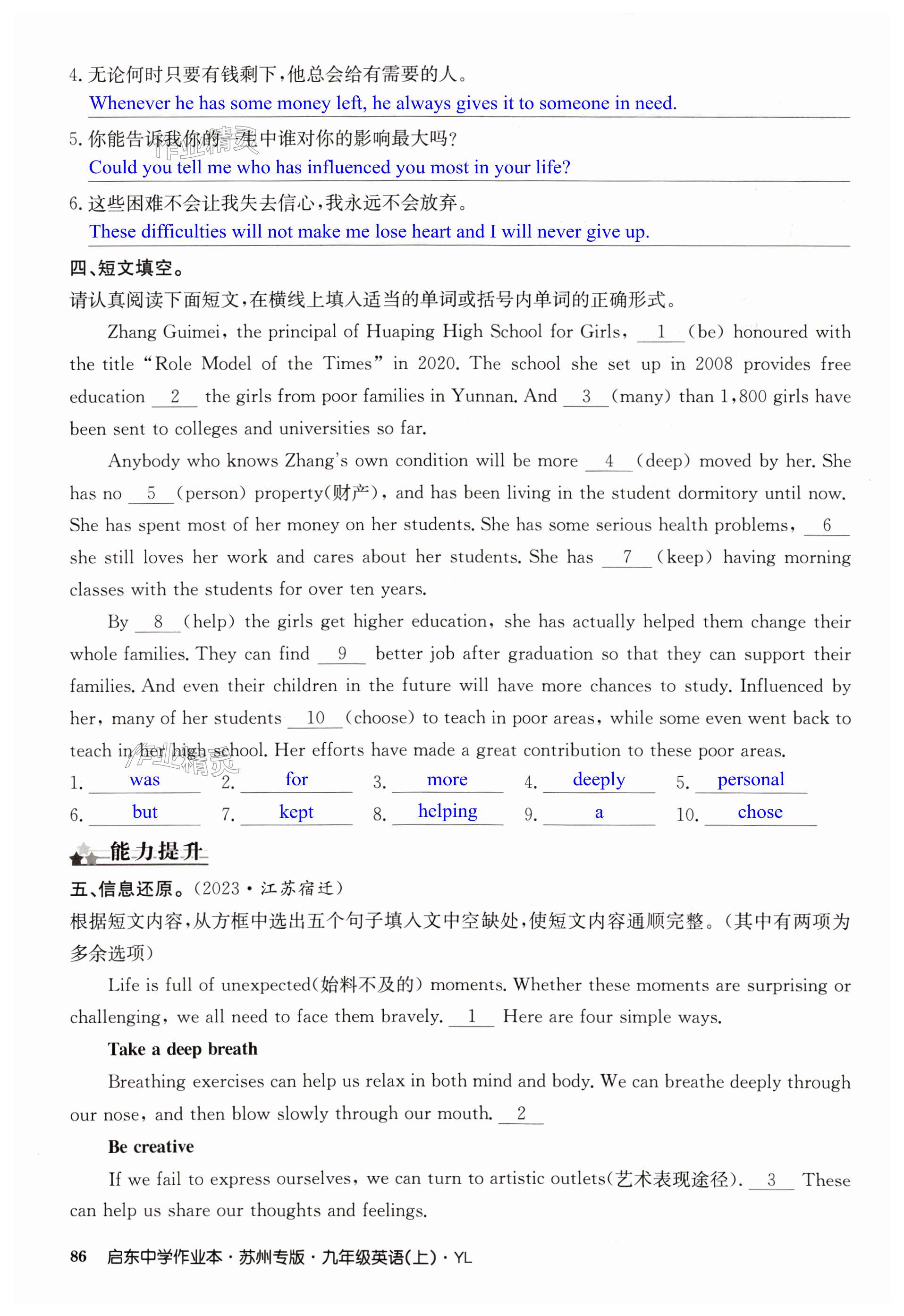 注:目前有些书本章节名称可能整理的还不是很完善,但都是按照顺序排列的,请同学们按照顺序仔细查找。练习册 2024年启东中学作业本九年级英语上册译林版苏州专版 答案主要是用来给同学们做完题方便对答案用的,请勿直接抄袭。