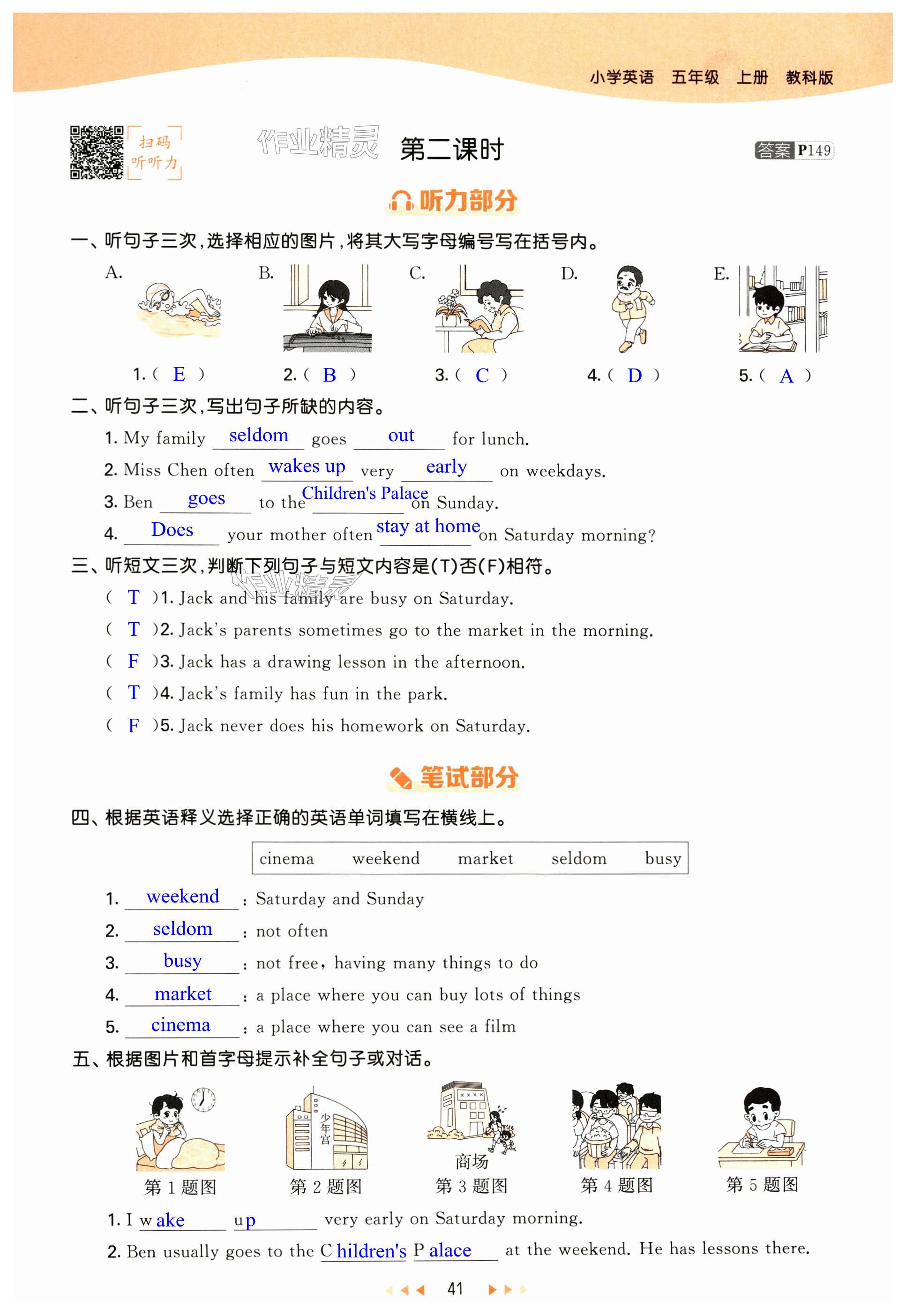 注:目前有些书本章节名称可能整理的还不是很完善,但都是按照顺序排列的,请同学们按照顺序仔细查找。练习册 2024年53天天练五年级英语上册教科版广州专版 答案主要是用来给同学们做完题方便对答案用的,请勿直接抄袭。
