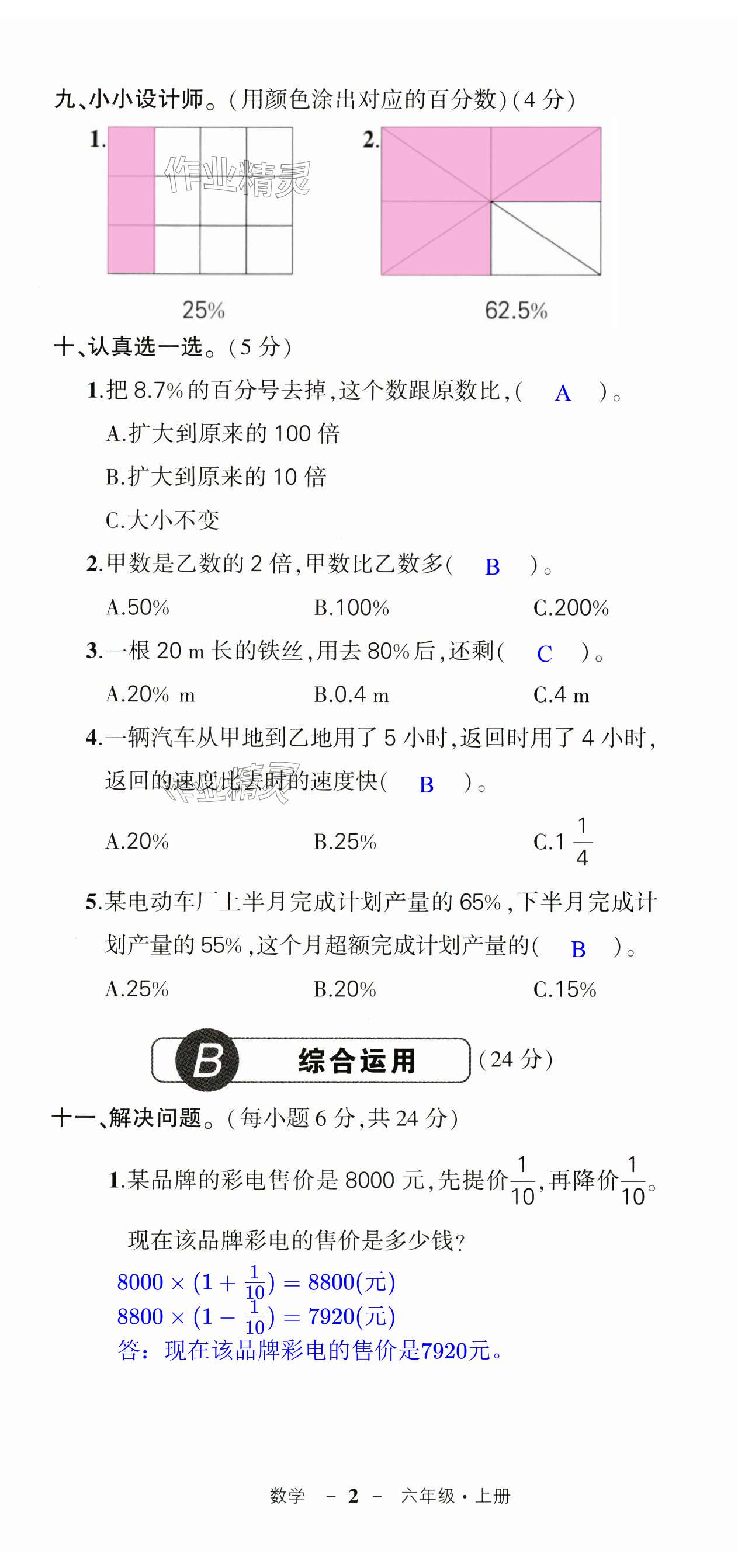 2024年状元成才路创优作业100分六年级数学上册人教版浙江专版