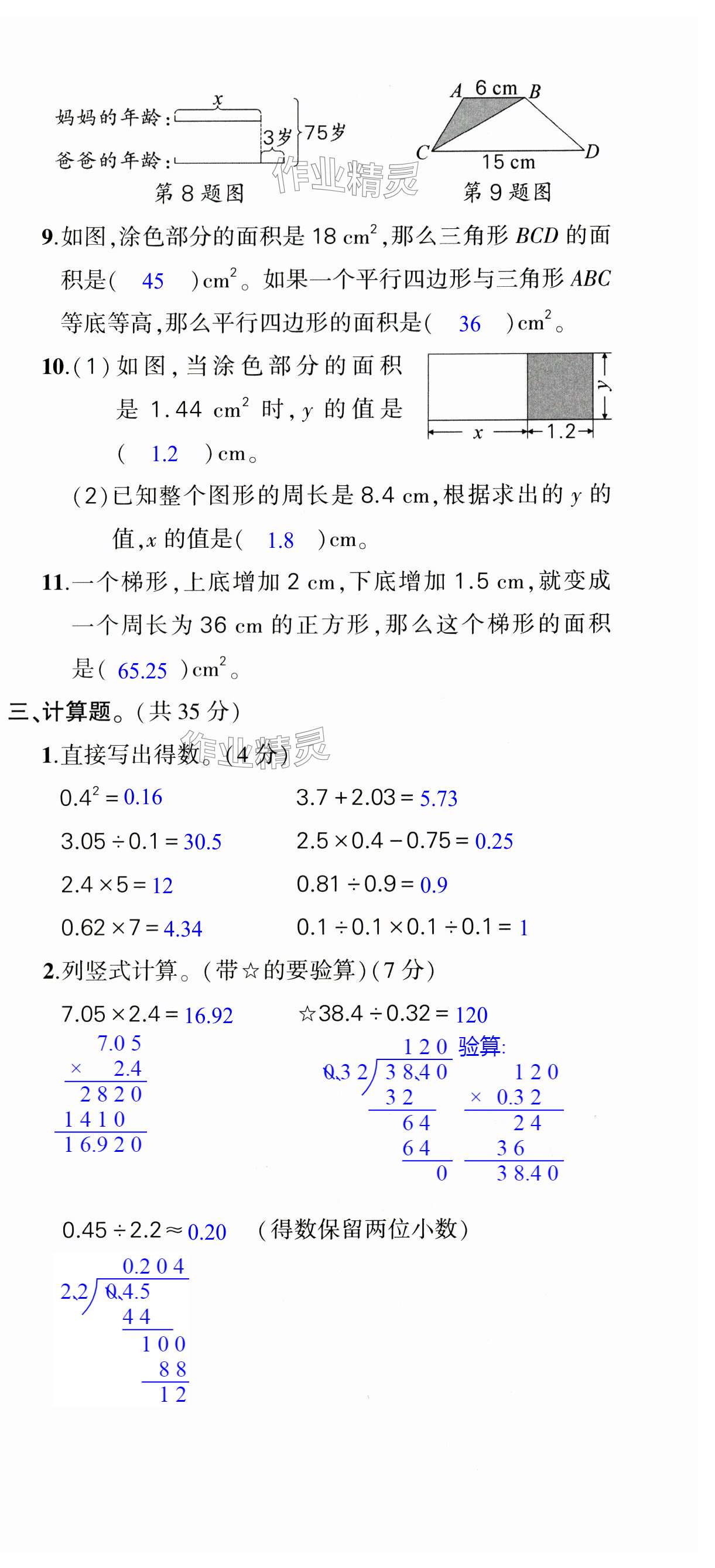 注:目前有些书本章节名称可能整理的还不是很完善,但都是按照顺序排列的,请同学们按照顺序仔细查找。练习册 2024年状元成才路创优作业100分五年级数学上册人教版浙江专版 答案主要是用来给同学们做完题方便对答案用的,请勿直接抄袭。