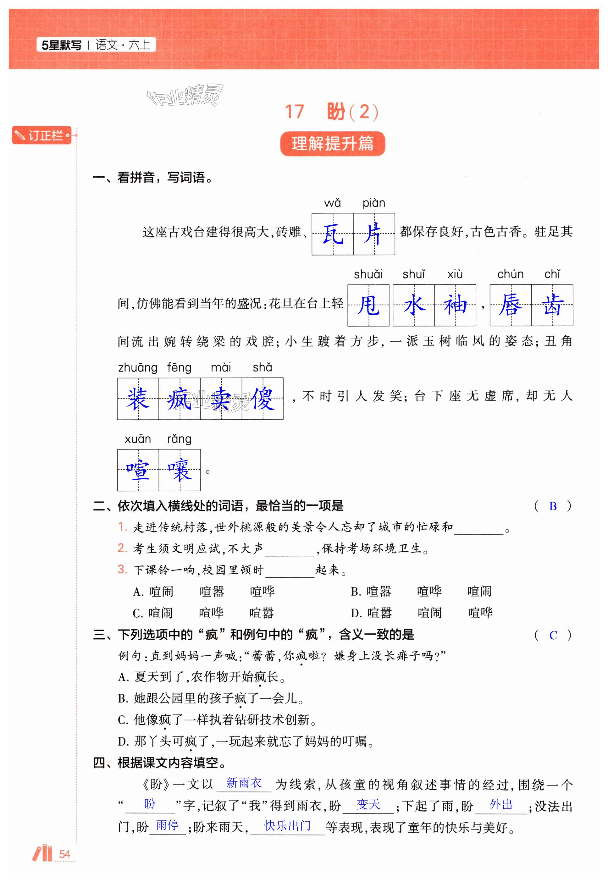 注:目前有些书本章节名称可能整理的还不是很完善,但都是按照顺序排列的,请同学们按照顺序仔细查找。练习册 2024年经纶学典默写达人六年级语文上册人教版 答案主要是用来给同学们做完题方便对答案用的,请勿直接抄袭。