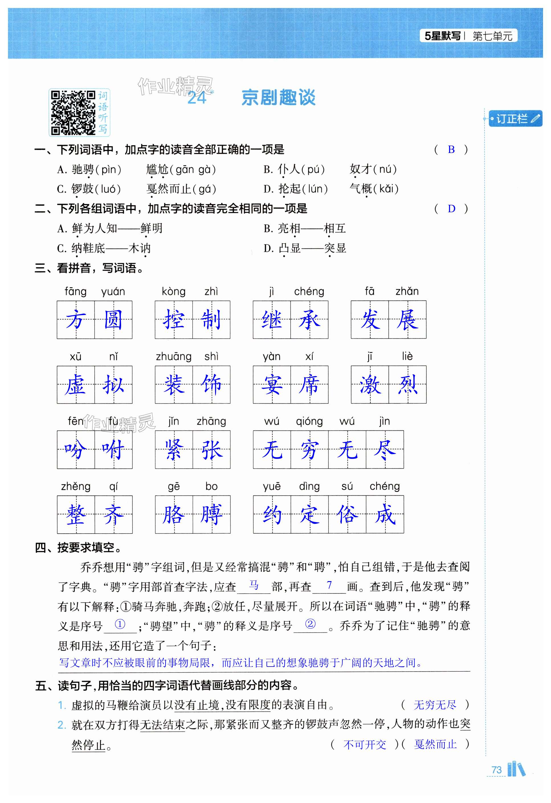 注:目前有些书本章节名称可能整理的还不是很完善,但都是按照顺序排列的,请同学们按照顺序仔细查找。练习册 2024年经纶学典默写达人六年级语文上册人教版 答案主要是用来给同学们做完题方便对答案用的,请勿直接抄袭。