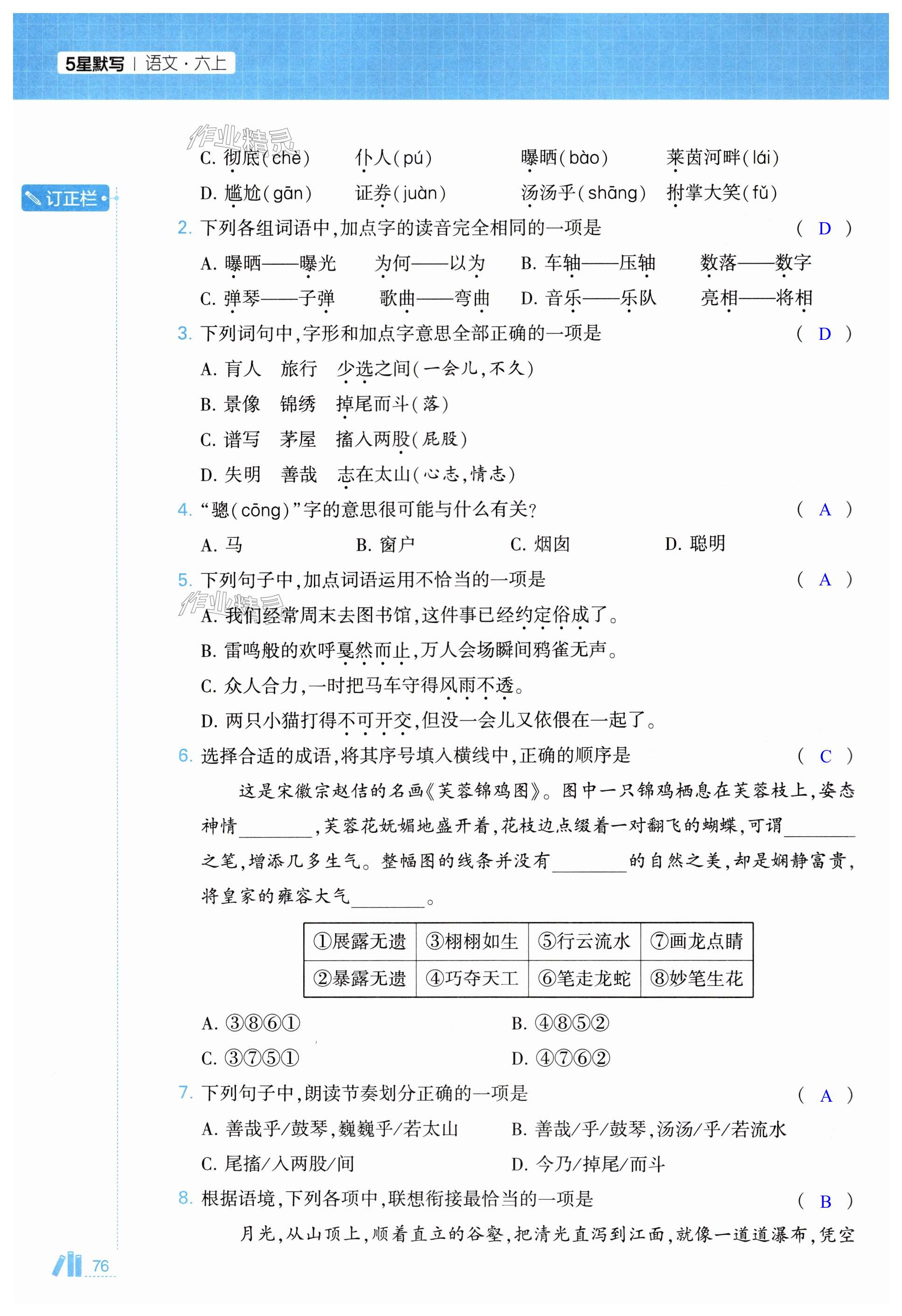 注:目前有些书本章节名称可能整理的还不是很完善,但都是按照顺序排列的,请同学们按照顺序仔细查找。练习册 2024年经纶学典默写达人六年级语文上册人教版 答案主要是用来给同学们做完题方便对答案用的,请勿直接抄袭。