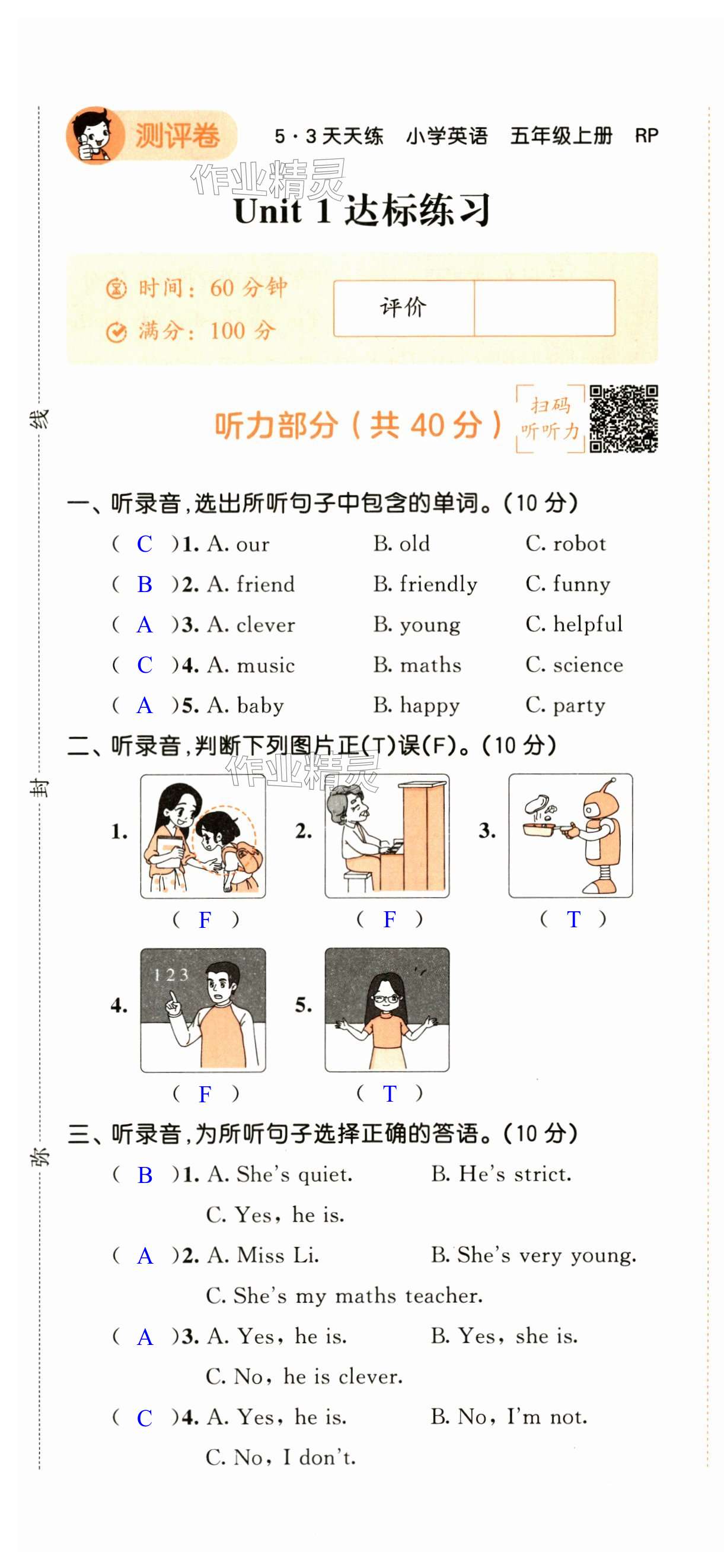 注:目前有些书本章节名称可能整理的还不是很完善,但都是按照顺序排列的,请同学们按照顺序仔细查找。练习册 2024年53天天练五年级英语上册人教版 答案主要是用来给同学们做完题方便对答案用的,请勿直接抄袭。