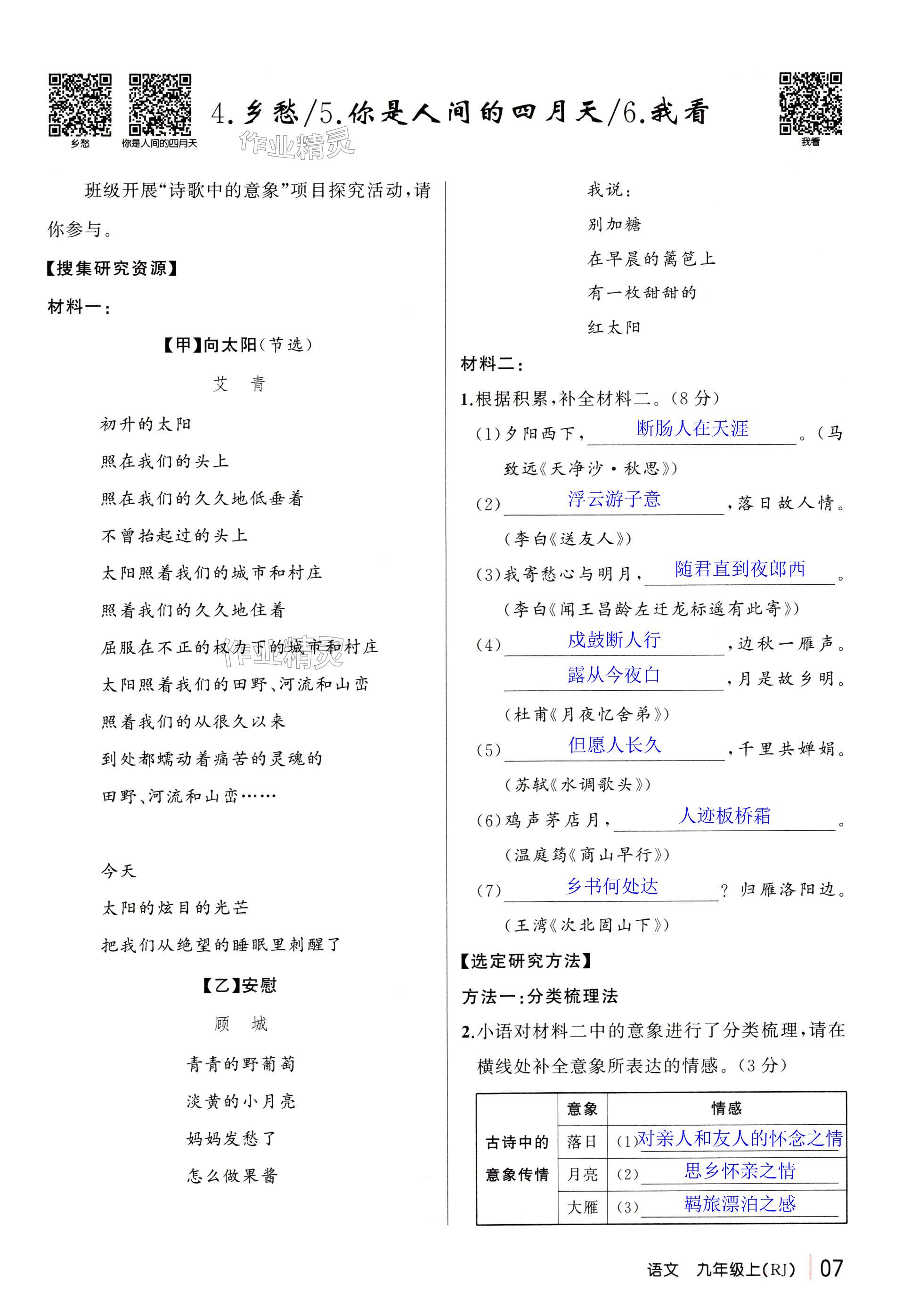 注:目前有些书本章节名称可能整理的还不是很完善,但都是按照顺序排列的,请同学们按照顺序仔细查找。练习册 2024年四清导航九年级语文上册人教版黄冈专版 答案主要是用来给同学们做完题方便对答案用的,请勿直接抄袭。
