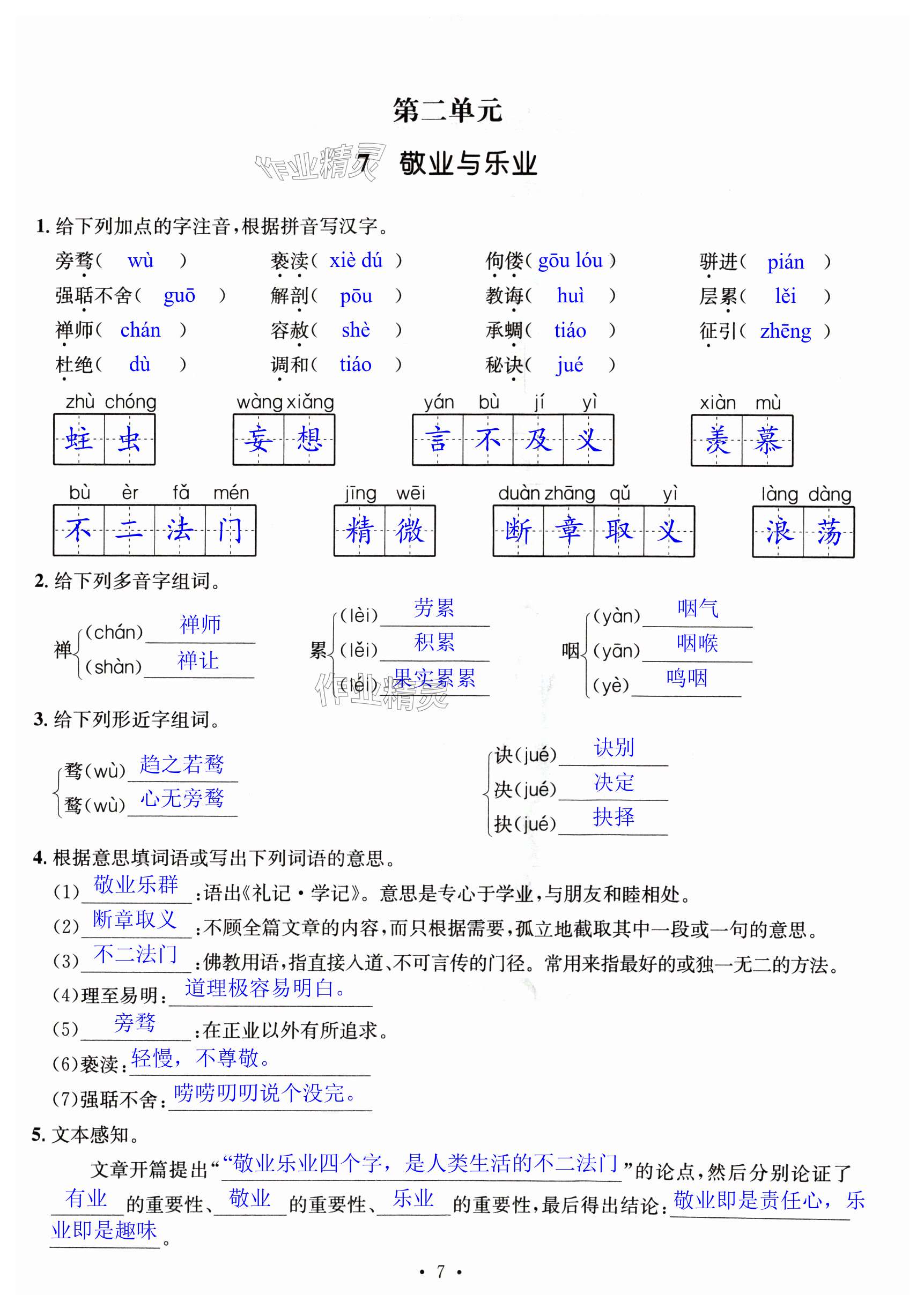 相关练习册答案