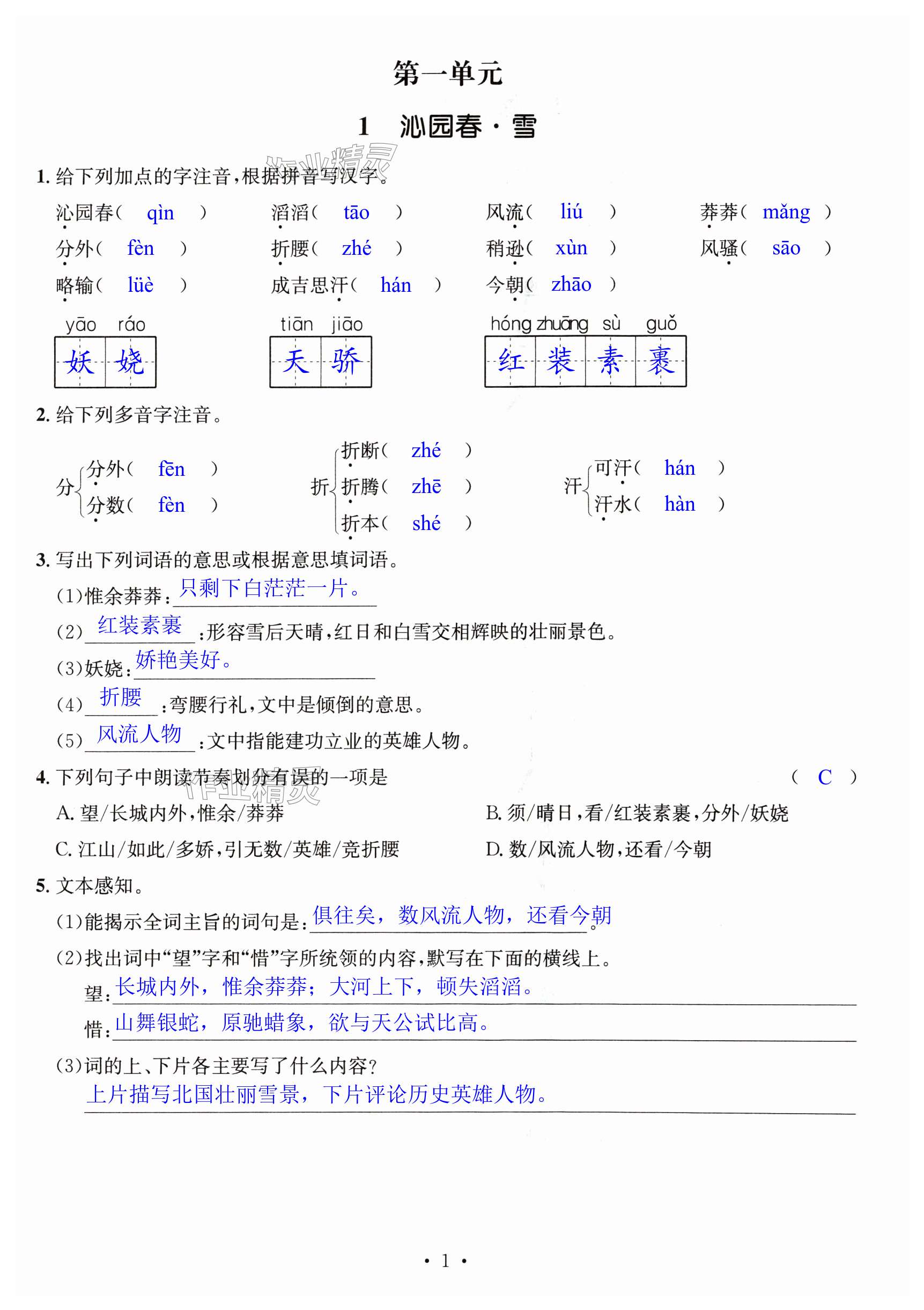 注:目前有些书本章节名称可能整理的还不是很完善,但都是按照顺序排列的,请同学们按照顺序仔细查找。练习册 2024年名师测控九年级语文上册人教版安徽专版 答案主要是用来给同学们做完题方便对答案用的,请勿直接抄袭。