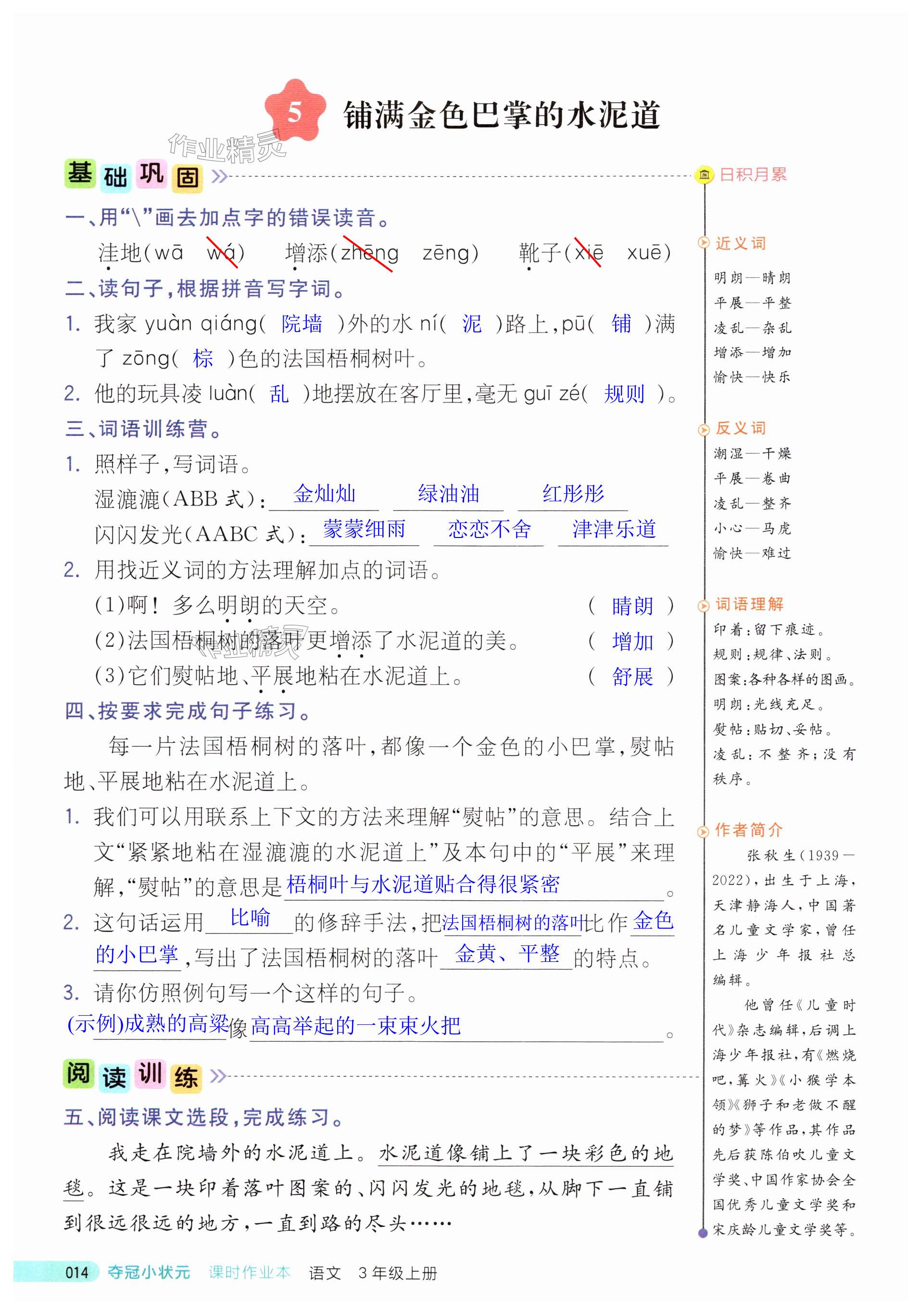注:目前有些书本章节名称可能整理的还不是很完善,但都是按照顺序排列的,请同学们按照顺序仔细查找。练习册 2024年夺冠小状元课时作业本三年级语文上册人教版 答案主要是用来给同学们做完题方便对答案用的,请勿直接抄袭。